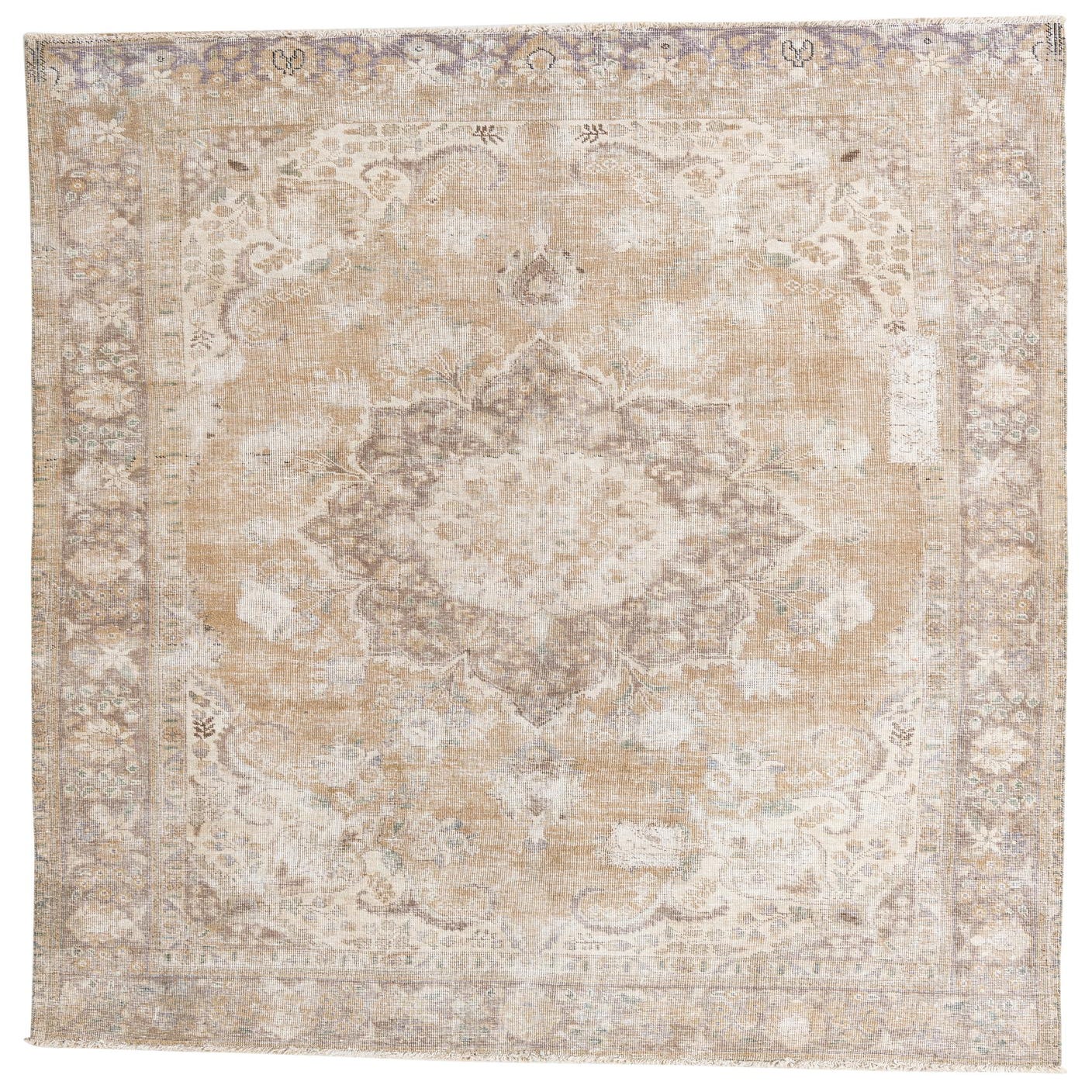 The Ultra Vintage collection presents a 7x10 hand-knotted rug crafted from 100% wool, displaying a sophisticated, yet subdued, blend of Beige, Brown, Ivory, and Tan hues. The piece features a central medallion encased within a complementary border, adorned with intricate floral and vine patterns, delivering a timeless aesthetic. The beige background is harmoniously balanced with the accent colors, creating a delicate visual texture that exudes a gently weathered look indicative of classic vintage design.