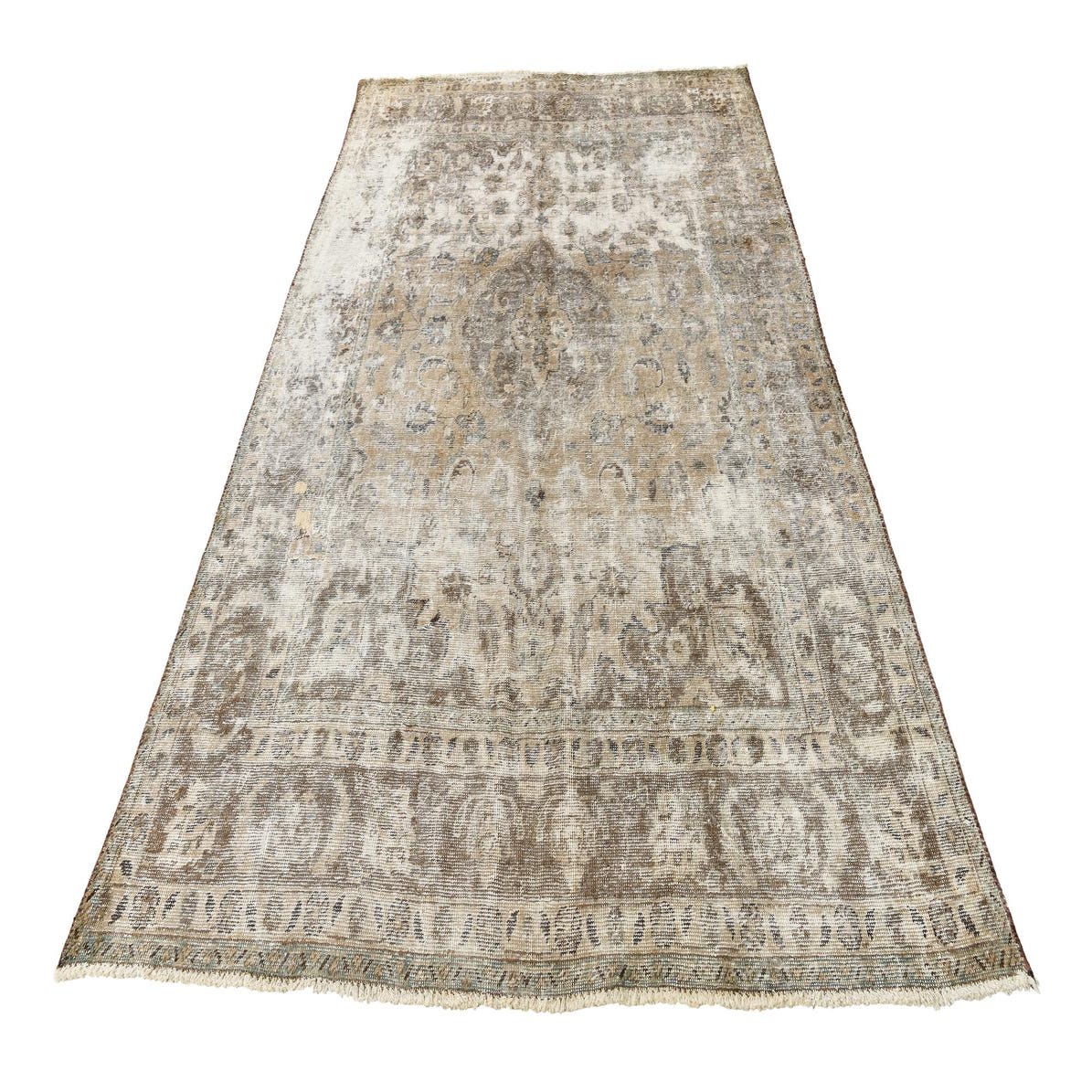 This Persian Ultra Vintage rug is an antique Persian Rug that has been washed, over-dyed, and then shaved down to a low pile. Look at the detail pictures to fully appreciate the uniqueness of this piece.