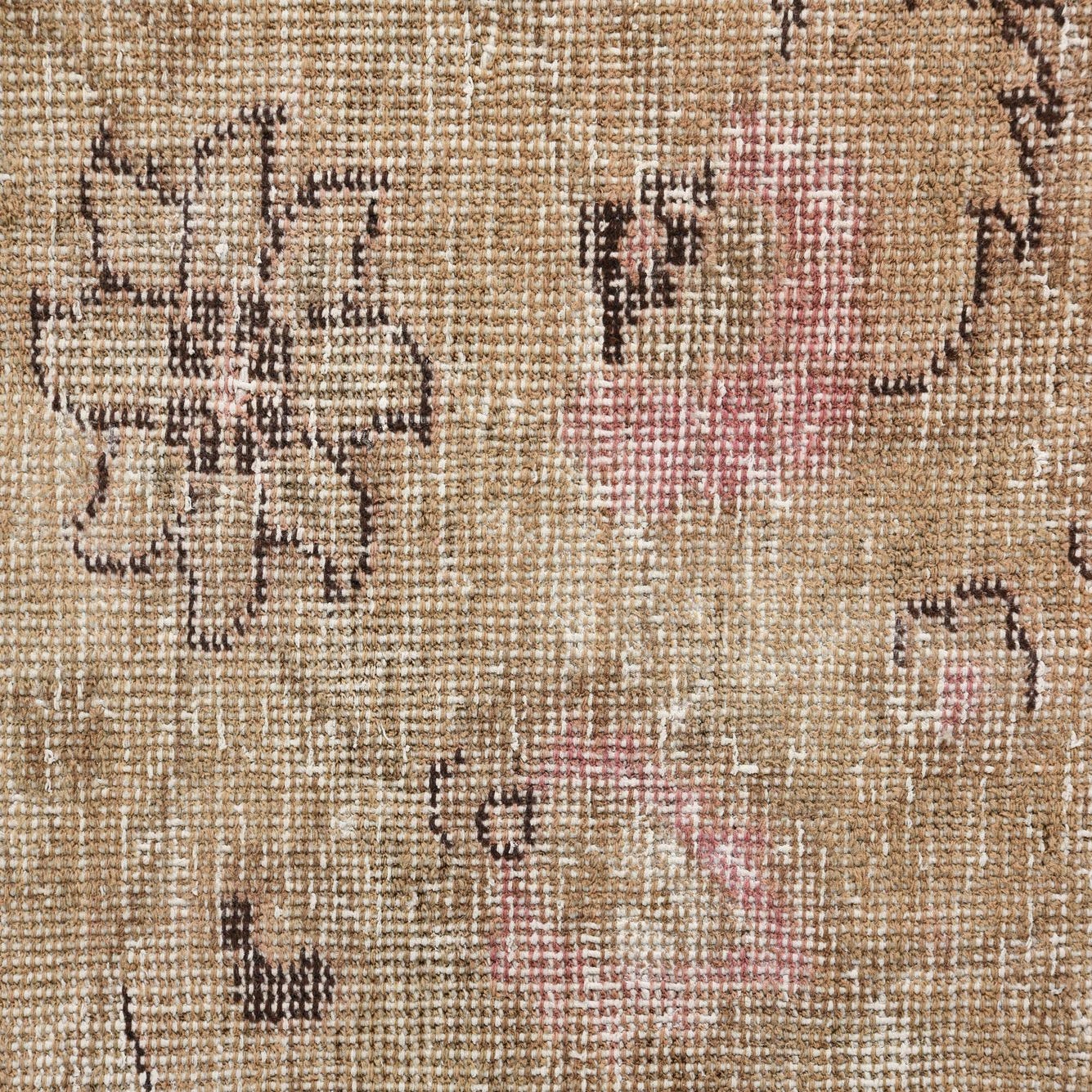 Primary color is Beige. Colors in this rug include: Beige, Brown, Ivory, Red.