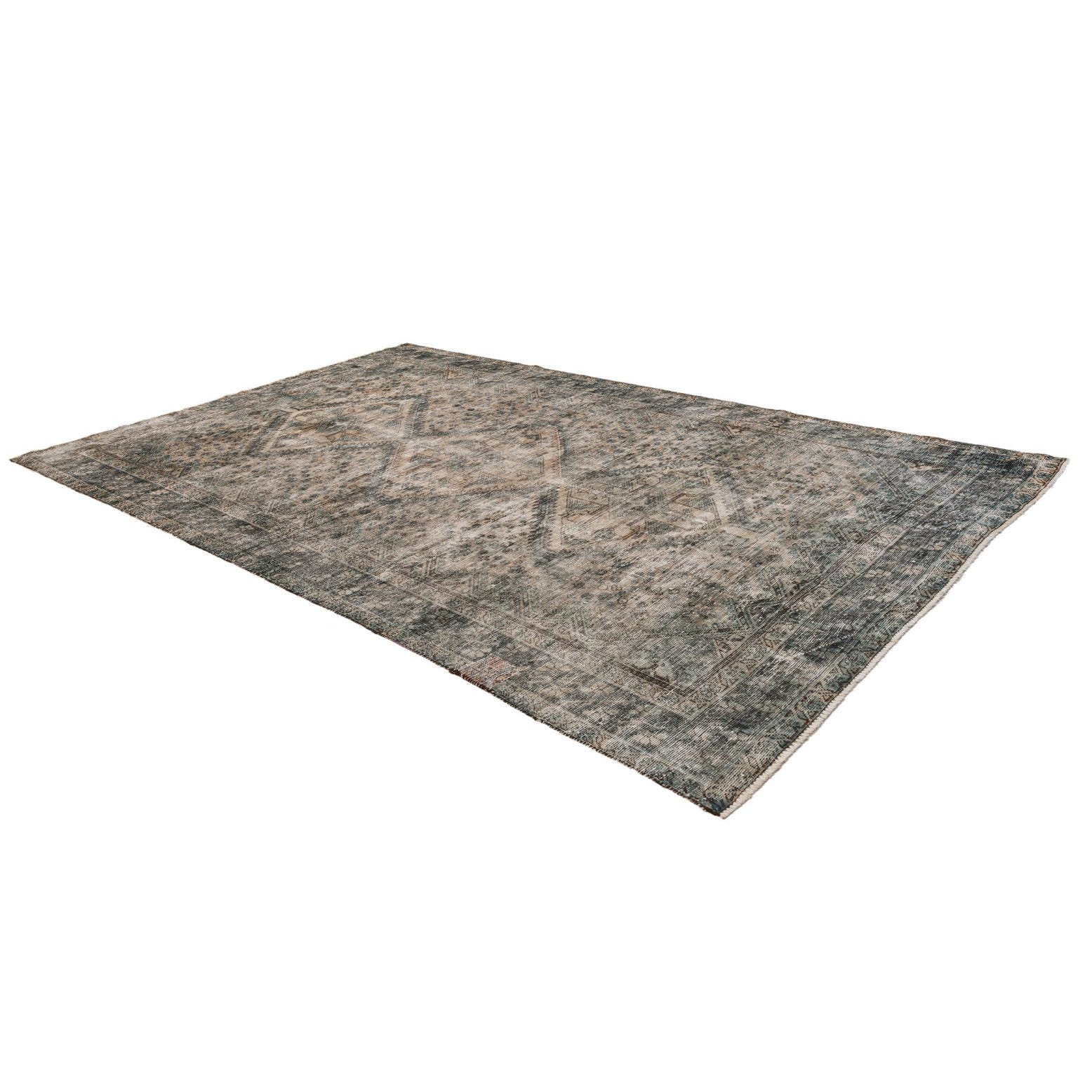 This Persian Ultra Vintage rug is an antique Persian Rug that has been washed, over-dyed, and then shaved down to a low pile. Look at the detail pictures to fully appreciate the uniqueness of this piece.