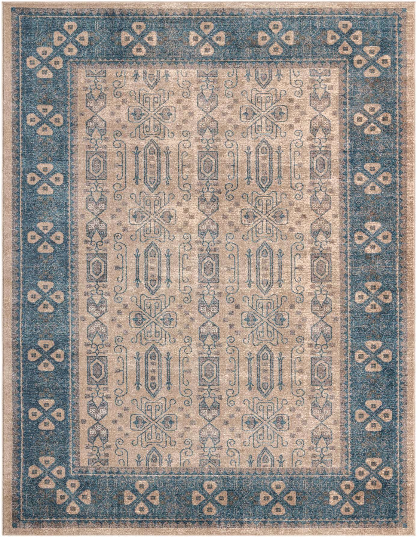 Primary color is Beige. Colors in this rug include: Beige, Ivory, Light Blue.