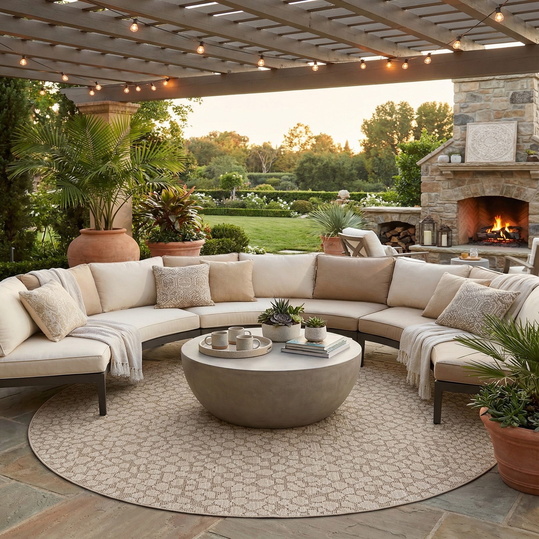 Ideal for outdoor spaces that seek to create an inviting yet sophisticated atmosphere, this rug can enhance patios, decks, and sunrooms. It complements rattan outdoor furniture as well as more modern pieces, seamlessly blending with a variety of themes ranging from tropical to contemporary. The neutral colors allow for flexibility in accent decor, making it a versatile piece for various design scenarios.
