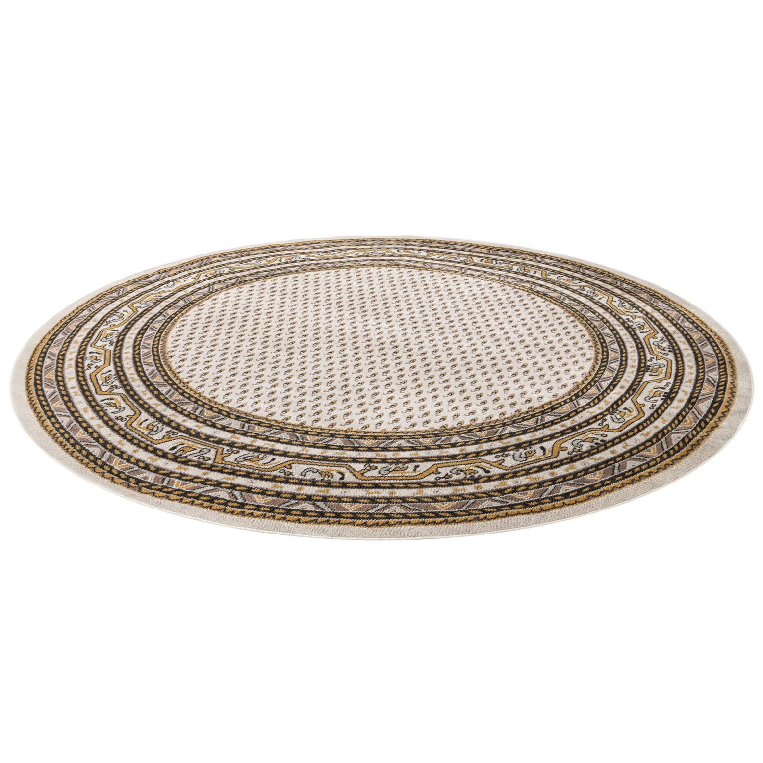 The neutral and versatile color scheme allows this rug to seamlessly integrate into various interior design themes. It would be particularly well-suited for spaces seeking to evoke a sense of elegance without overpowering the surrounding decor, such as a minimalist living room, a sophisticated home office, or a tranquil bedroom setting. The round shape provides a focal point for furniture arrangements and adds a sense of balance and symmetry to the room's layout.