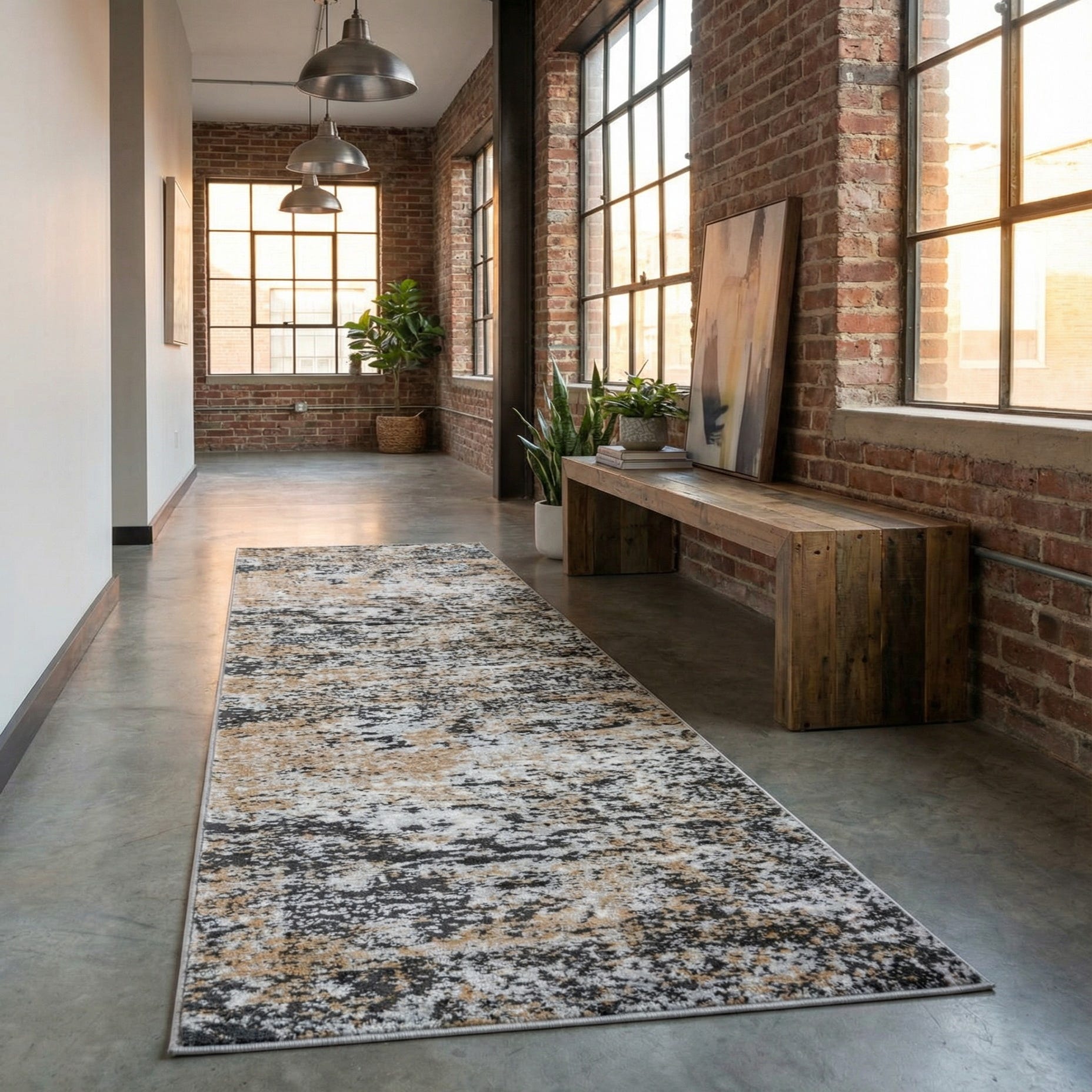Well suited to transitional and modern interiors, this runner works in hallways, entryways, and narrow kitchen aisles, or layered in front of a console or bench to anchor a seating vignette. It pairs naturally with warm wood tones, cool gray upholstery, and neutral furnishings where the rug’s mix of beige and gray brings balance without calling attention to itself.