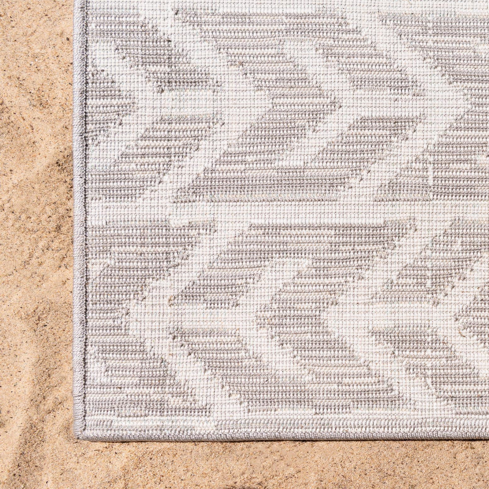 This outdoor runner works well on a covered porch or patio, as a welcoming entryway accent, or in a hallway where length and rhythm matter. Its beige and ivory palette pairs naturally with weathered woods, rattan or wicker seating, and matte metal accents, fitting coastal, modern farmhouse, and transitional schemes that favor calm, neutral layers.