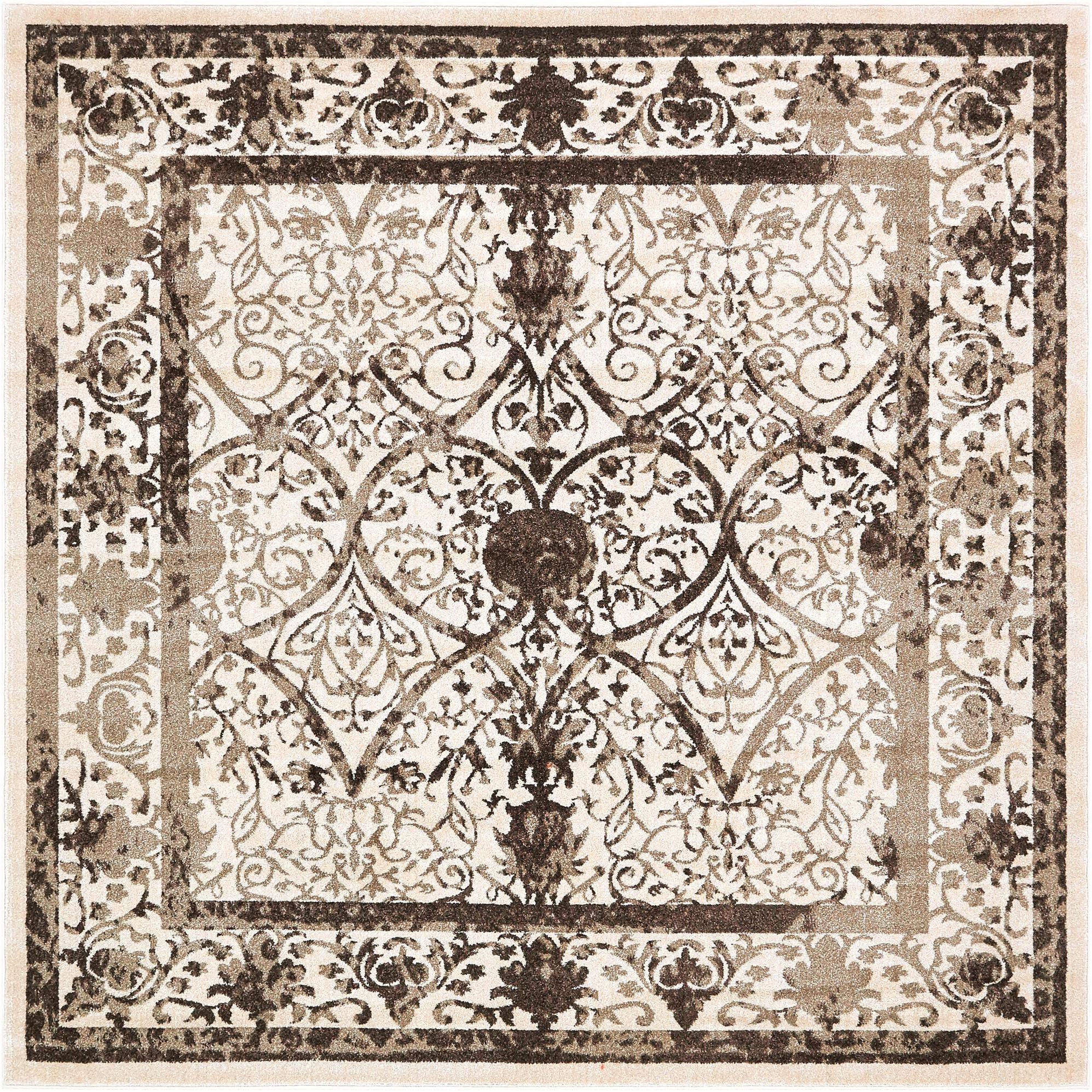 A square Rugs.com Miranda rug featuring an ornate traditional floral pattern in shades of brown, tan, and ivory.