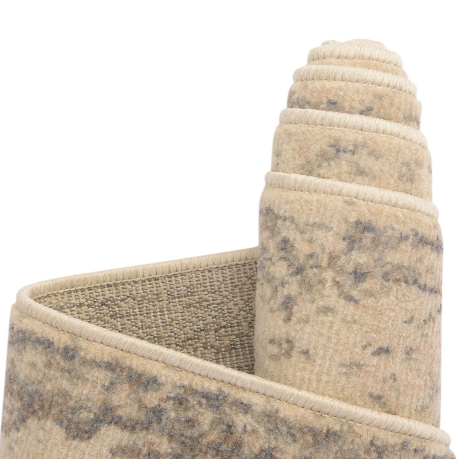 The texture is smooth to the touch with a composition that ensures a shed-free experience, complemented by the practical benefit of stain resistance. This rug's aesthetic is suited to a variety of interior design scenarios, fitting seamlessly within a modern minimalist setting while also having the ornate detail to complement more classic decor. Its neutral color palette ensures it can serve as an understated anchor in a living room, bedroom, or larger dining area, harmonizing with natural wood elements, sleek furniture, and a range of color schemes.