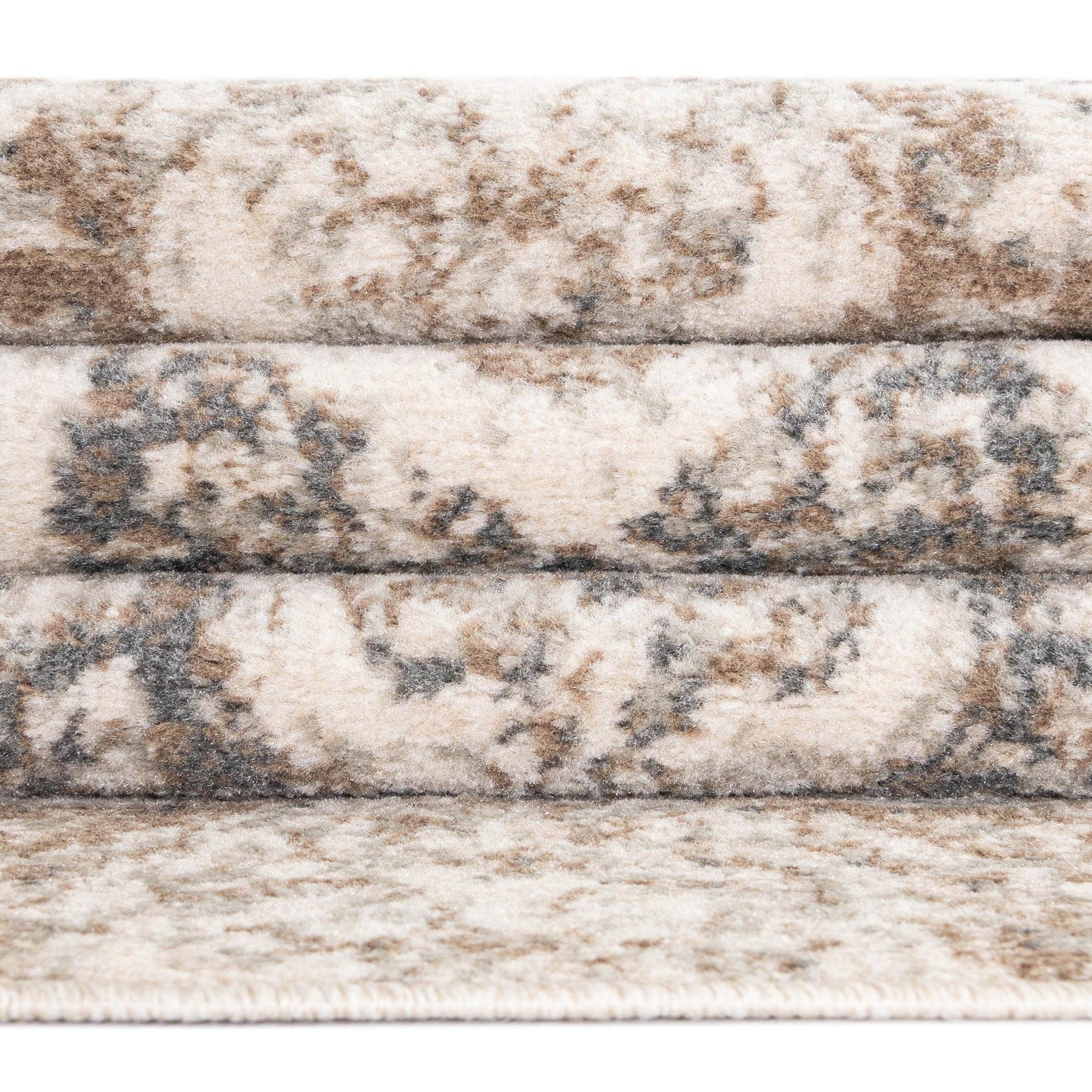 Machine-made from 100% polypropylene, the rug has a low-profile, tightly woven surface that feels smooth underfoot with a light tactile texture where the pattern sits. It works well layered under a seating group in a living room, centered beneath a bed in a cozy bedroom, or as an anchor for a dining area. Pair it with warm wood furniture and natural textiles or with neutral upholstery and metal accents to emphasize its versatile, lived-in character.