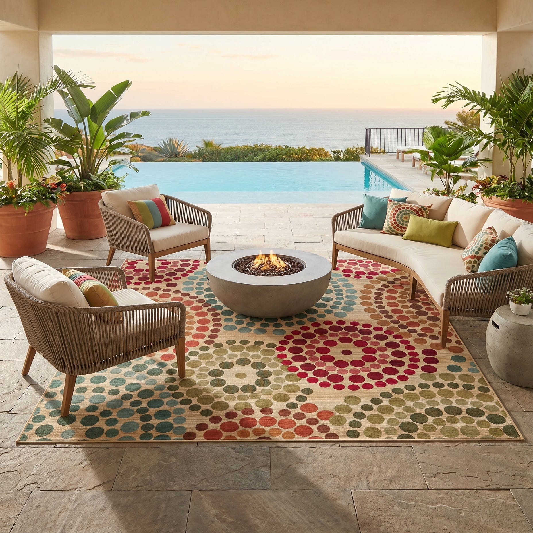 7' 10 x 7' 10 Easy-Clean Modern Indoor / Outdoor Square Rug