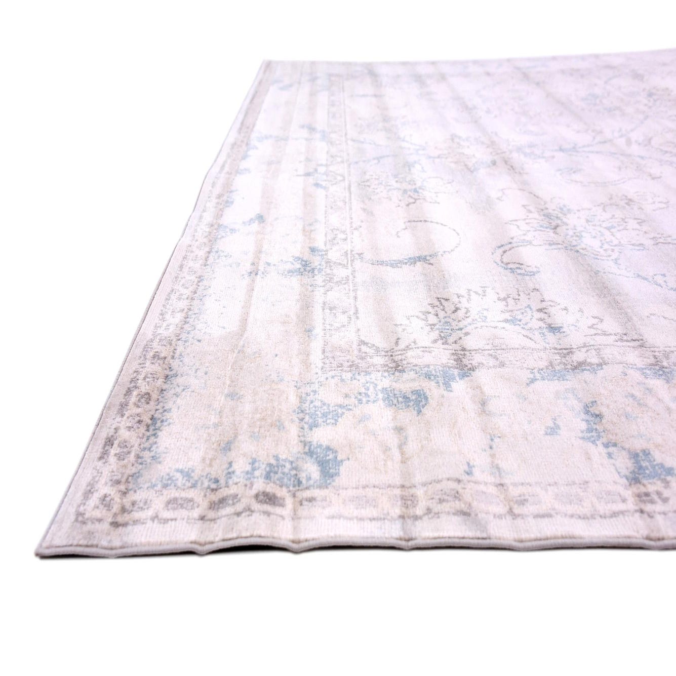 Primary color is Beige. Colors in this rug include: Beige, Blue, Gray, Light Brown.