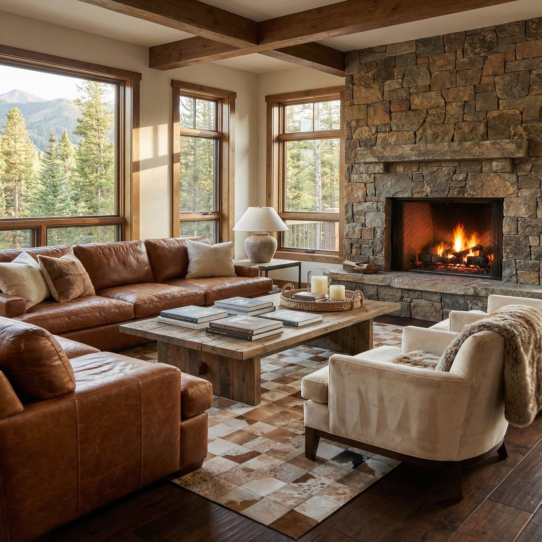A rectangular 8x10 Cowhide Patchwork rug featuring a checkerboard pattern of brown, tan, and ivory squares.