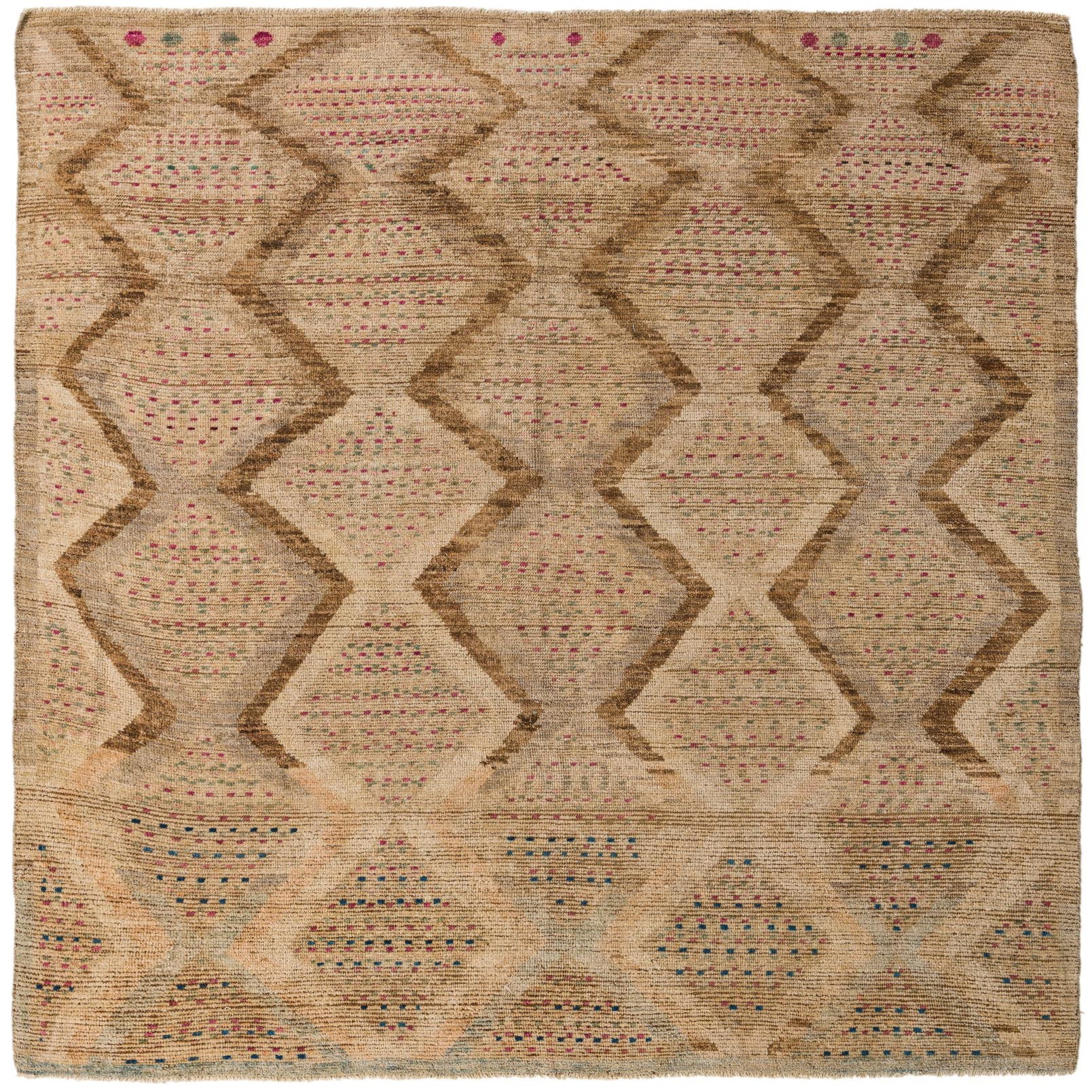 A rectangular 8x10 Darya rug in shades of brown and tan, featuring a modern abstract diamond pattern with subtle colorful accents.