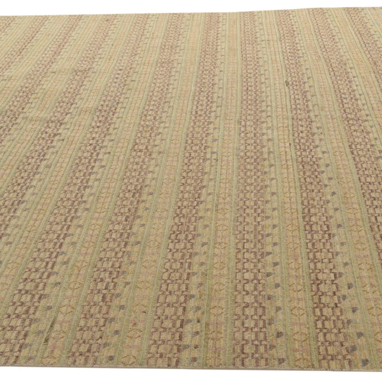 This rug works well as a neutral anchor in a living room or beneath a dining table, pairing naturally with warm wood tones, leather seating and linen upholstery. It also complements Scandinavian, coastal or transitional interiors where a restrained palette and tactile materials are desired. Layer it over a larger sisal or place it in a bedroom to introduce quiet pattern and muted color without overwhelming a room.