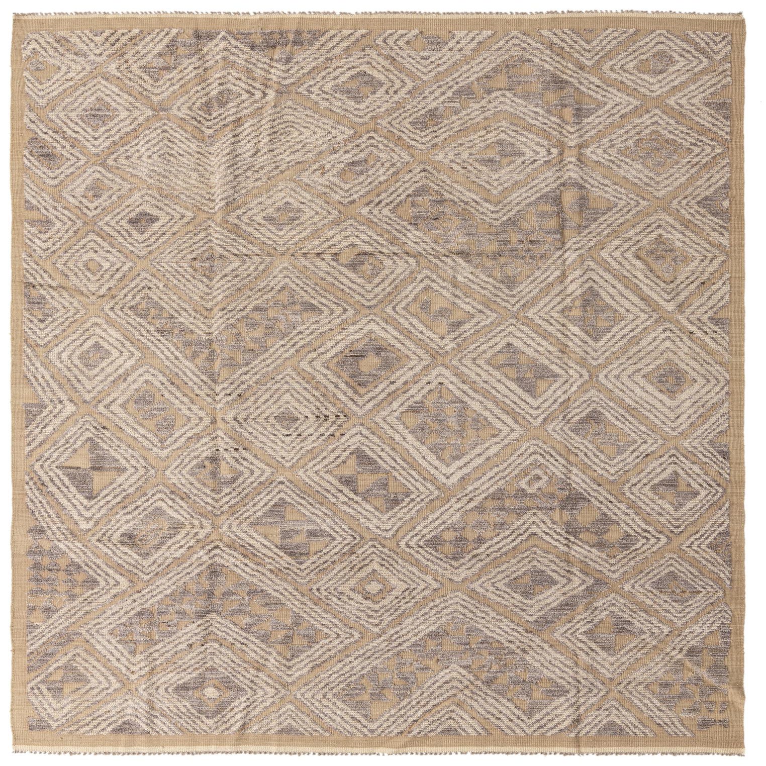 A rectangular 8x10 Darya wool rug featuring a modern abstract diamond pattern in brown, tan, and ivory.