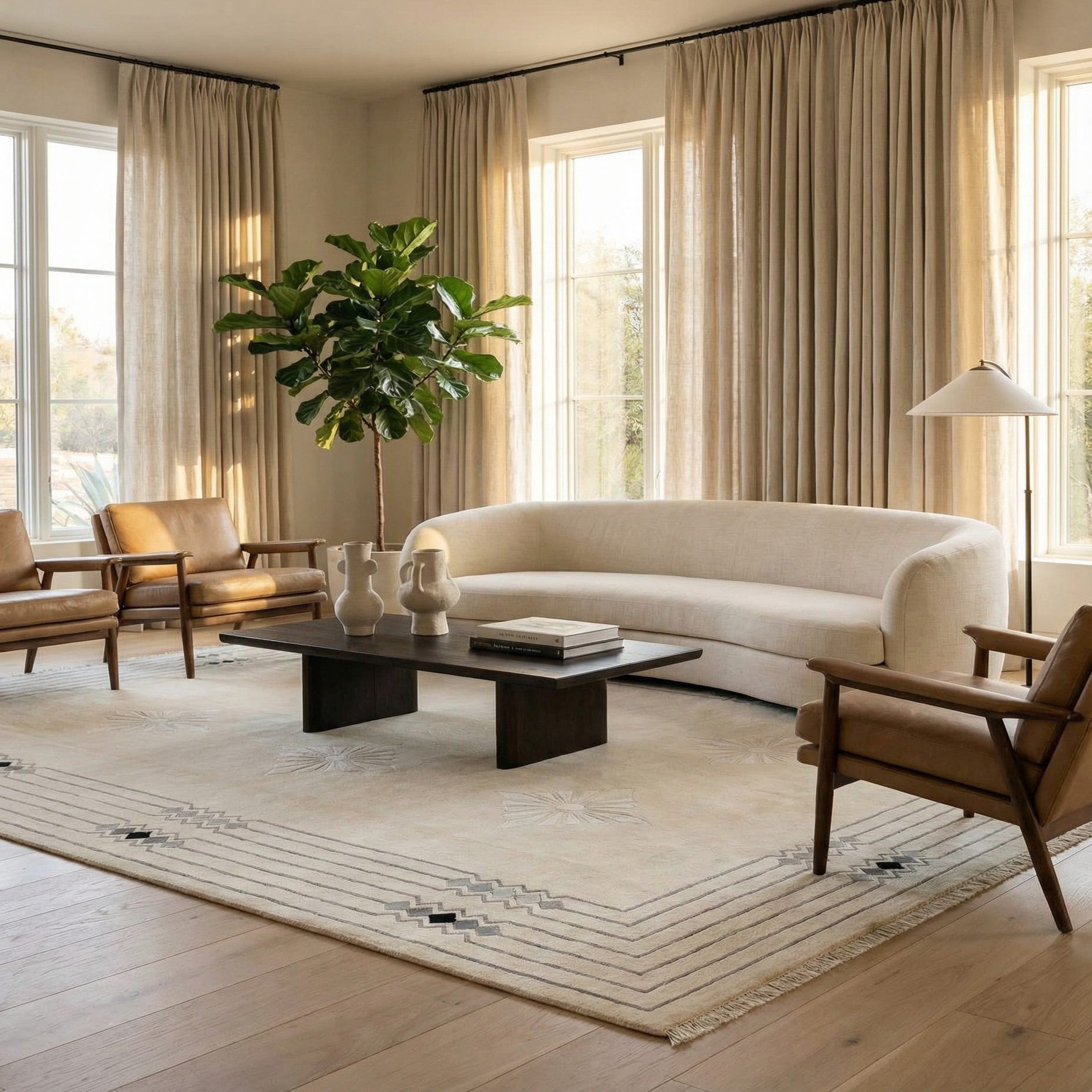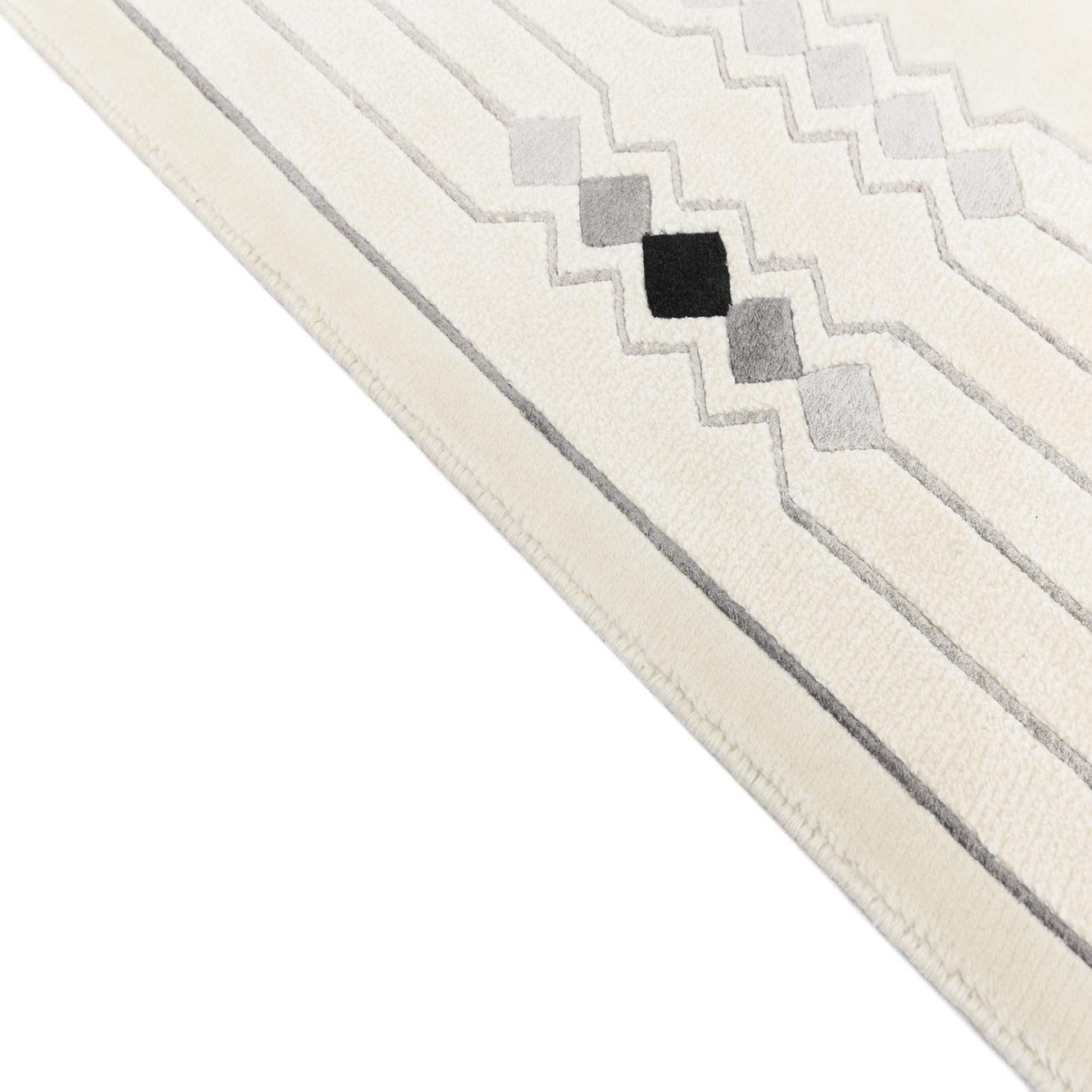 Place this rug under a living room seating area or anchored beneath a dining table to give a room a quiet, structured foundation. It pairs naturally with natural wood tones and matte black metal accents that echo the darker diamond details, and works well in Scandinavian, mid-century modern or contemporary transitional interiors. Layer with neutral pillows and textured throws in gray and tan to emphasize the rug’s subtle pattern and warm undertones.