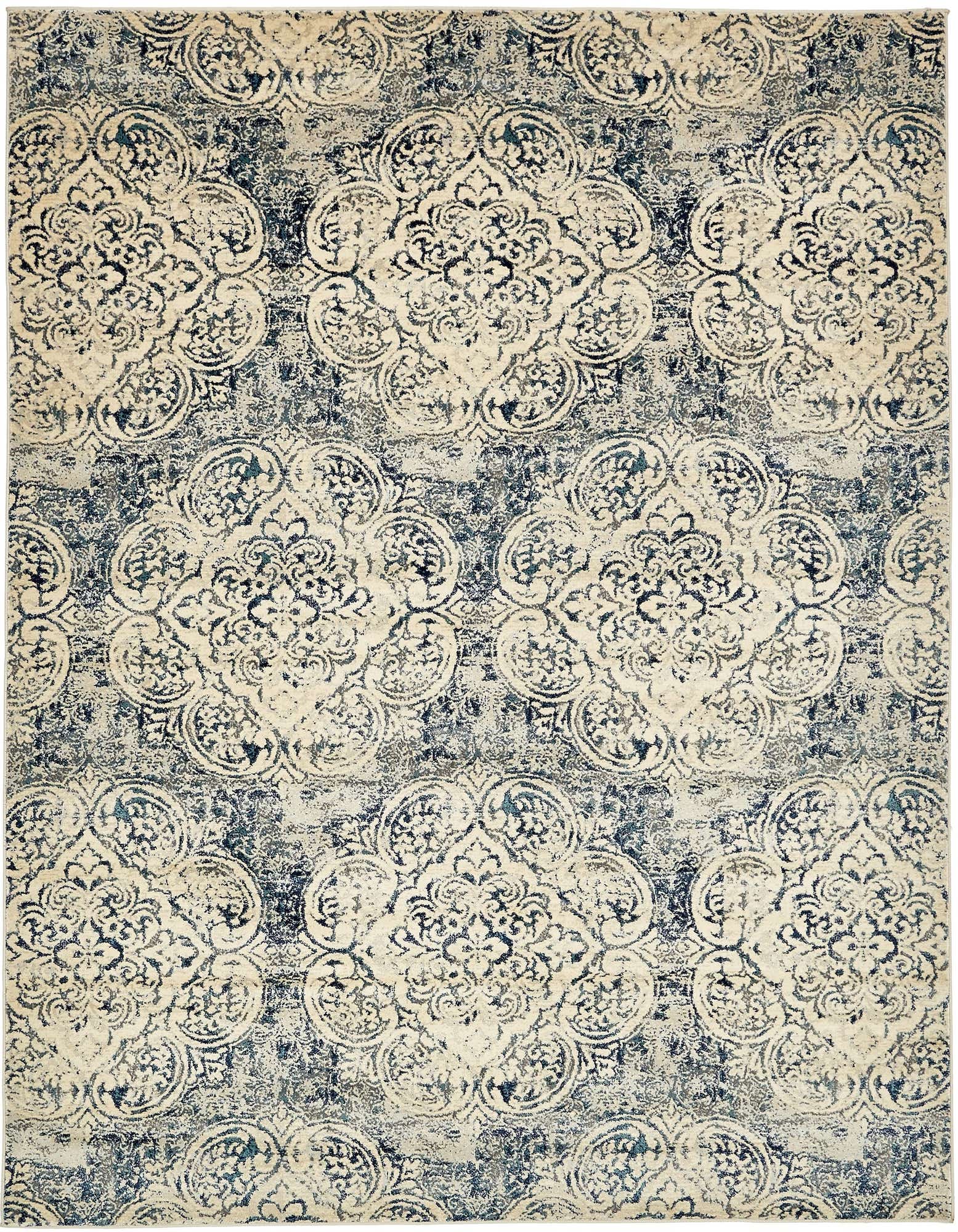 Primary color is Beige. Colors in this rug include: Beige, Navy Blue, Light Blue, Tan.