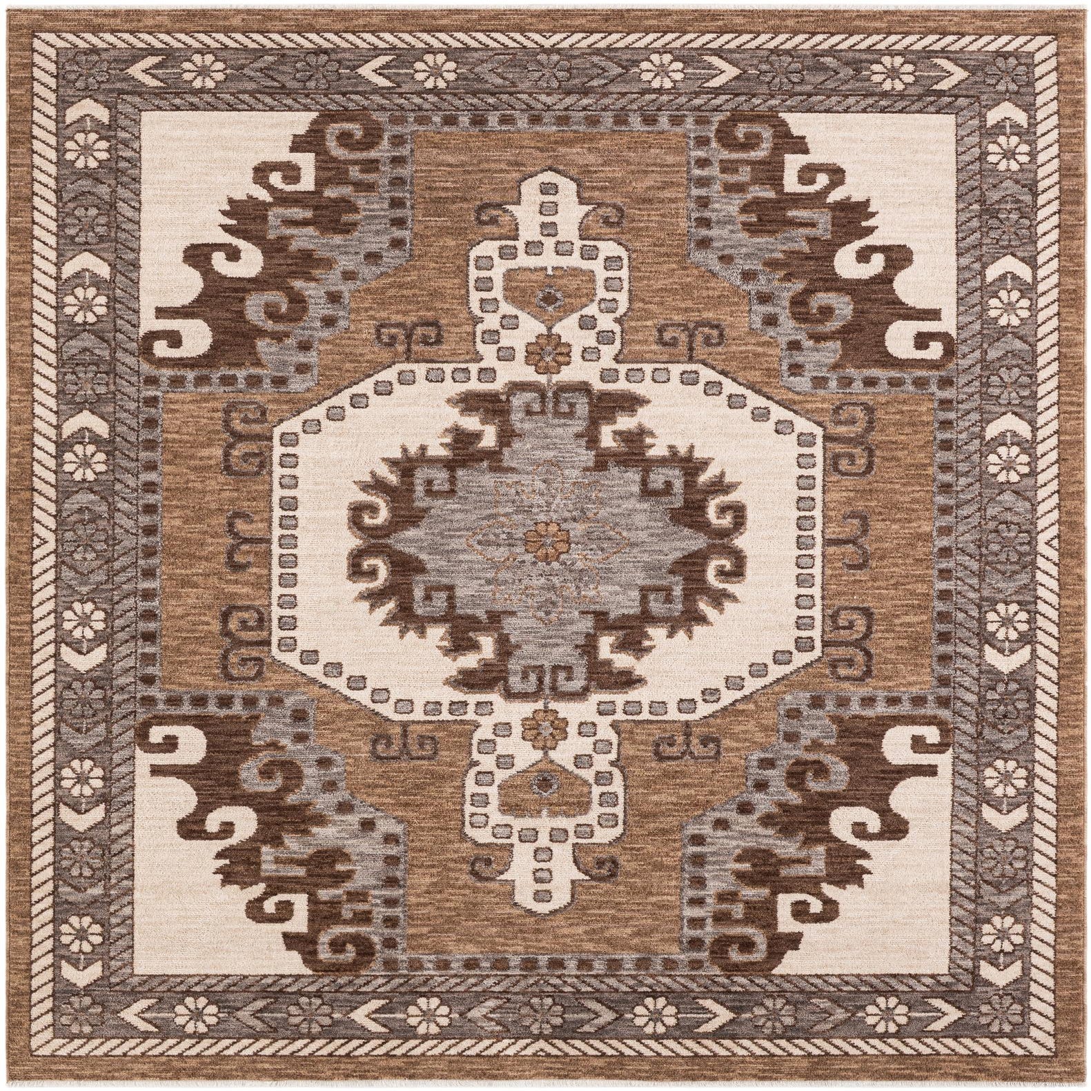 Primary color is Beige. Colors in this rug include: Beige, Brown, Gray, Ivory.