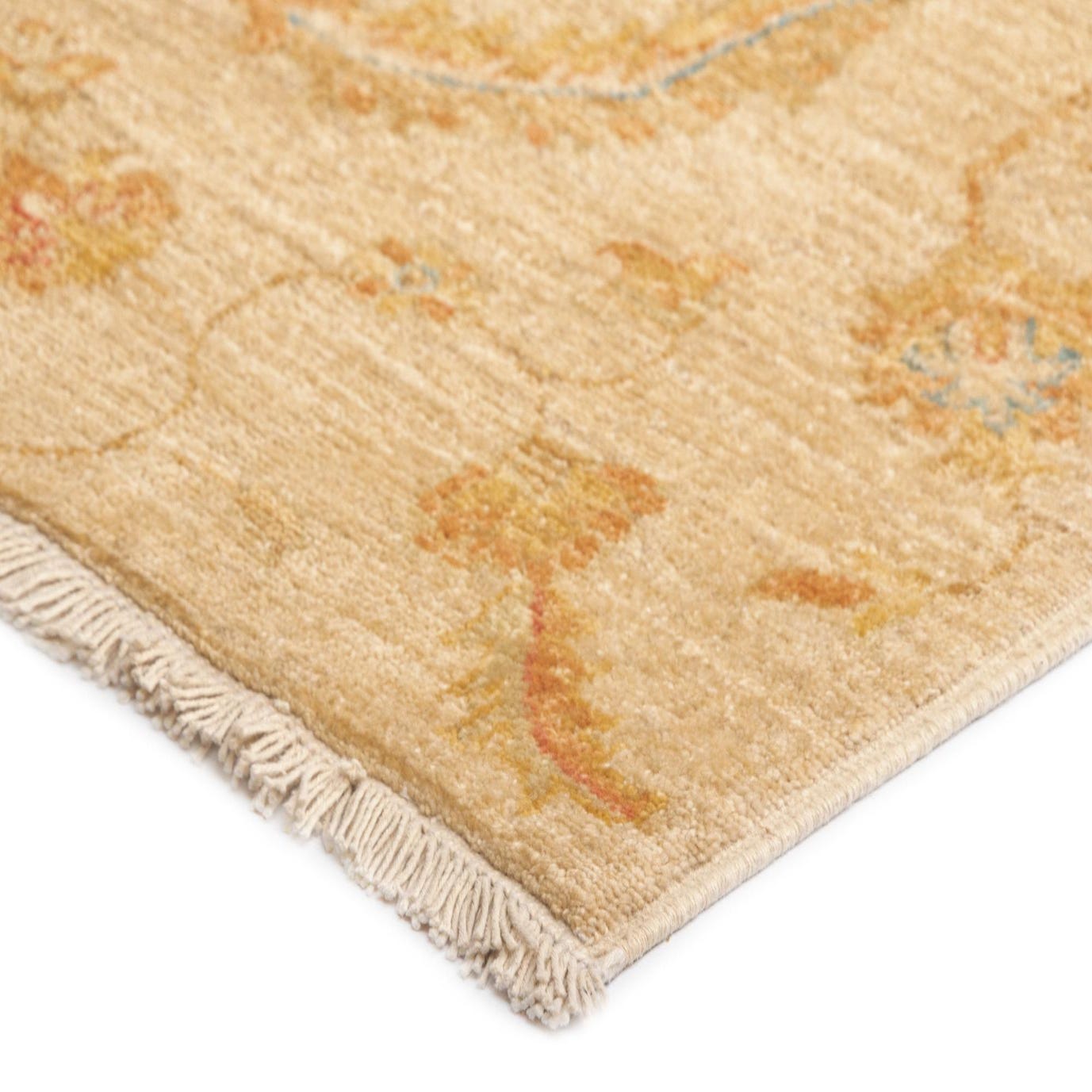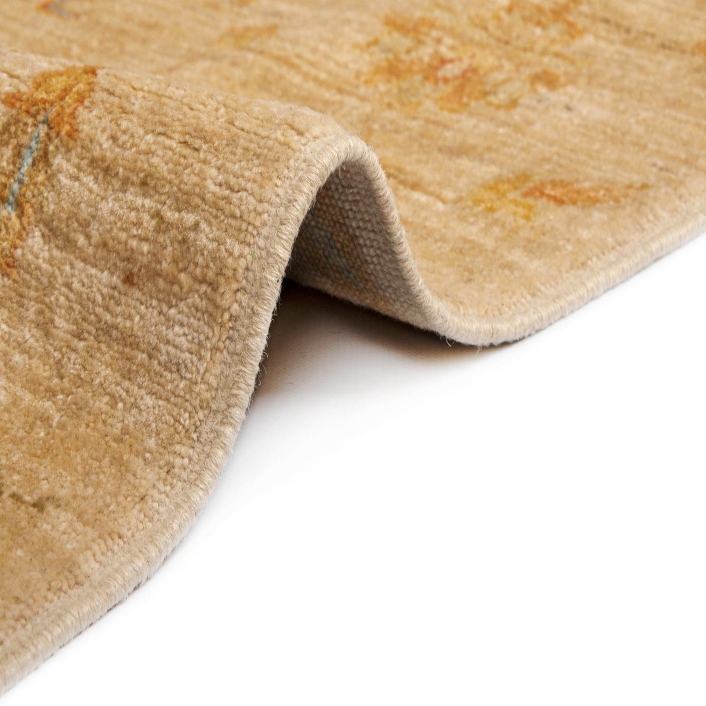 The Kaizar collection offers a timeless charm with its hand-made 8x10 wool rug. The plush texture of 100% wool provides a soft underfoot experience while ensuring durability for high-traffic areas. This particular piece features a tasteful traditional pattern enhanced by a combination of beige and cream tones, which provide a versatile backdrop that can blend seamlessly into various decor schemes.