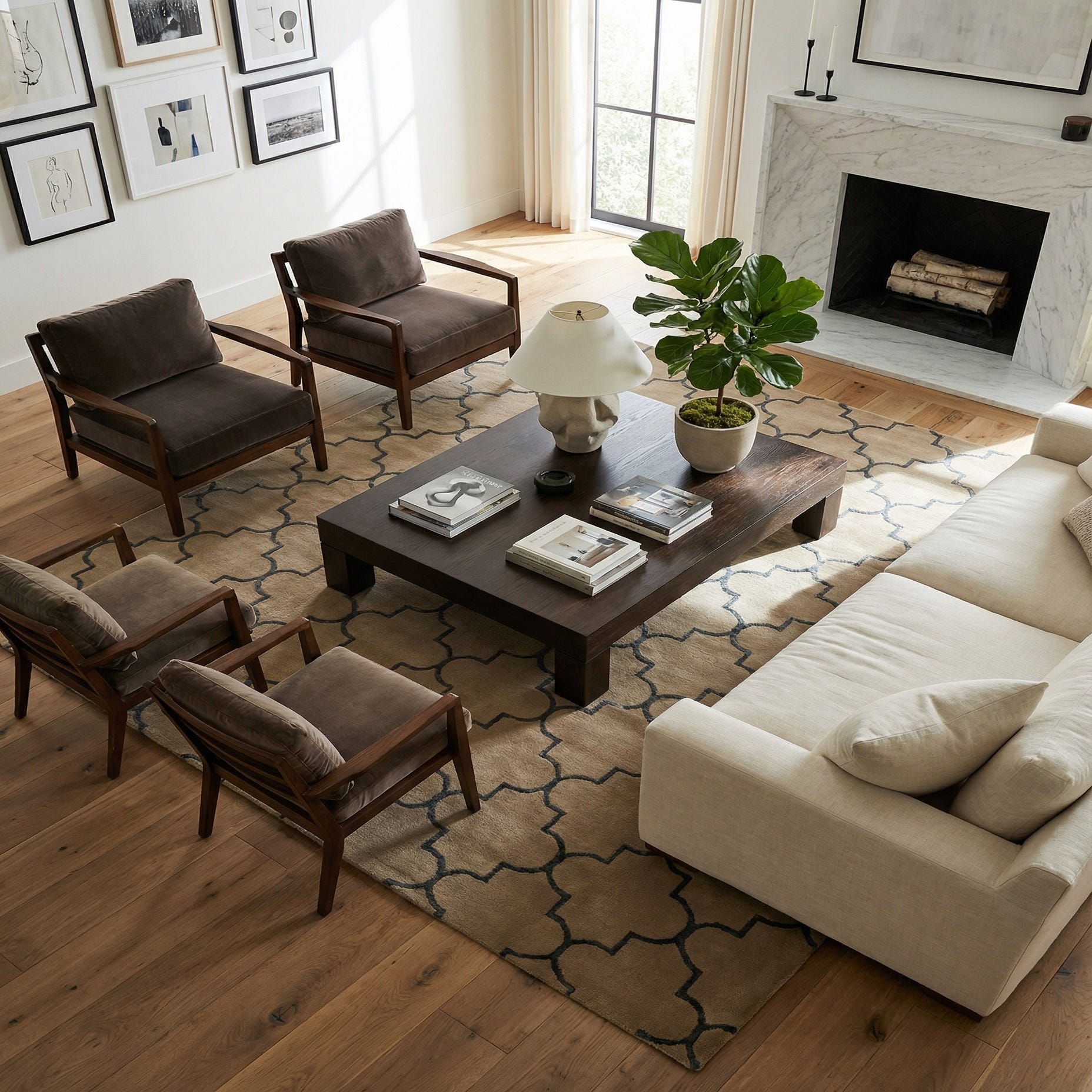 The neutral color palette makes this rug highly versatile, suitable for anchoring living rooms, dining areas, or office spaces. The simplicity of the pattern allows for seamless integration into minimalist spaces, while the luxurious materials can elevate more opulent interiors. This rug can act as a statement piece or a harmonious addition to a room with rich textures and layered design elements.