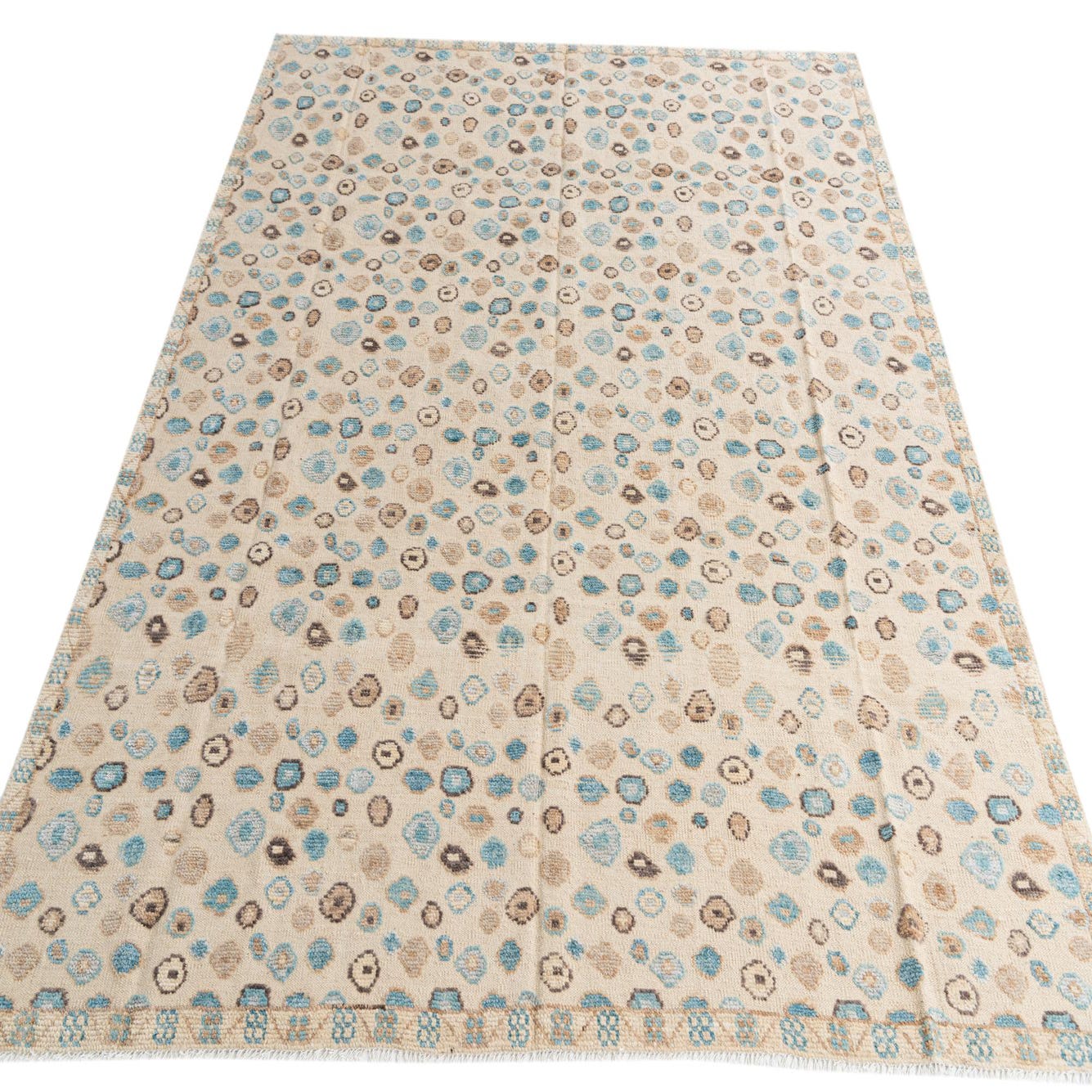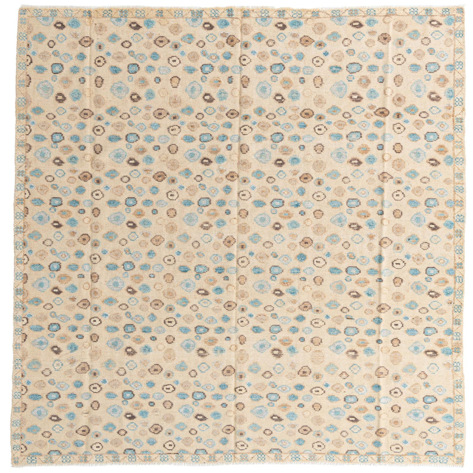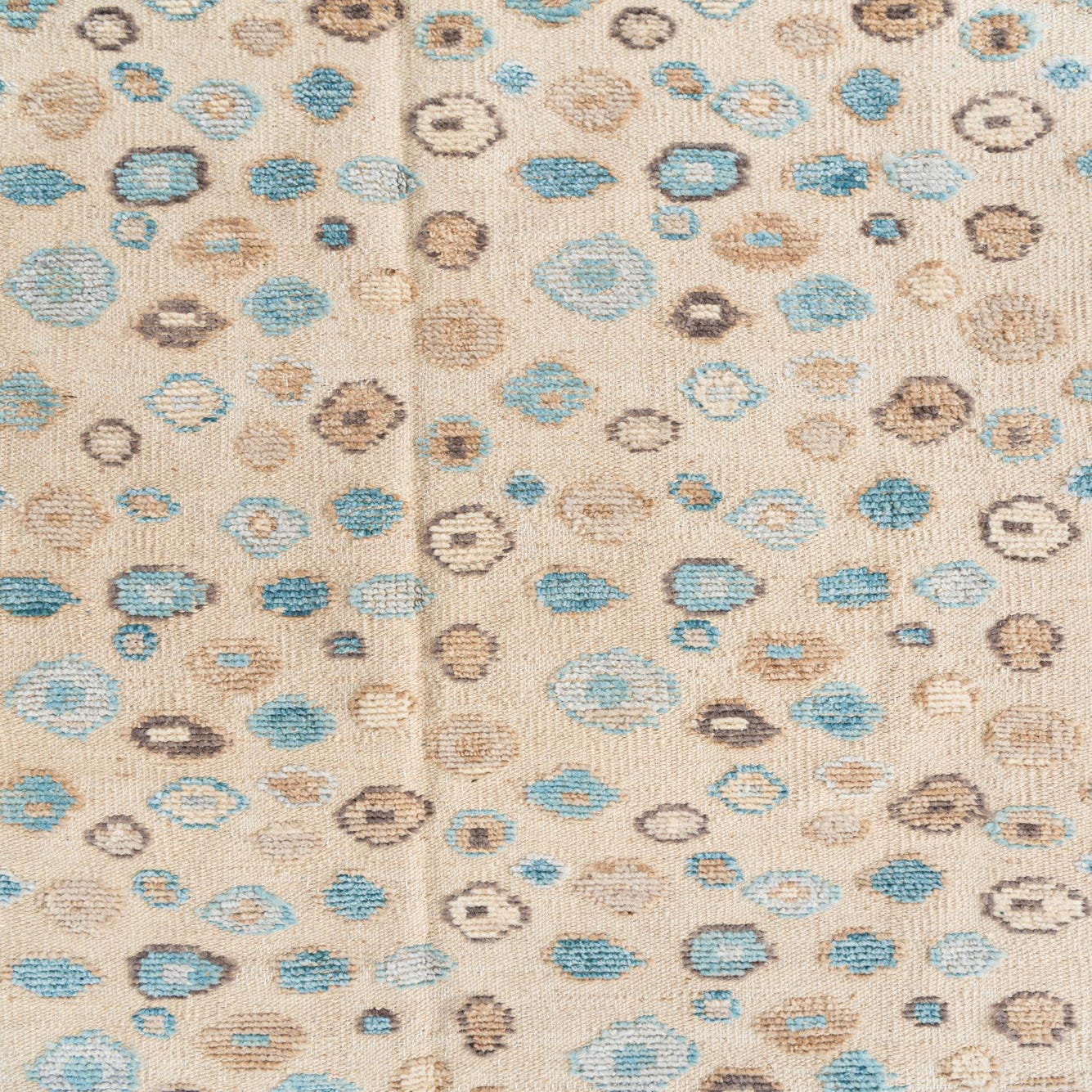 Primary color is Beige. Colors in this rug include: Beige, Brown, Ivory, Light Blue, Gray.
