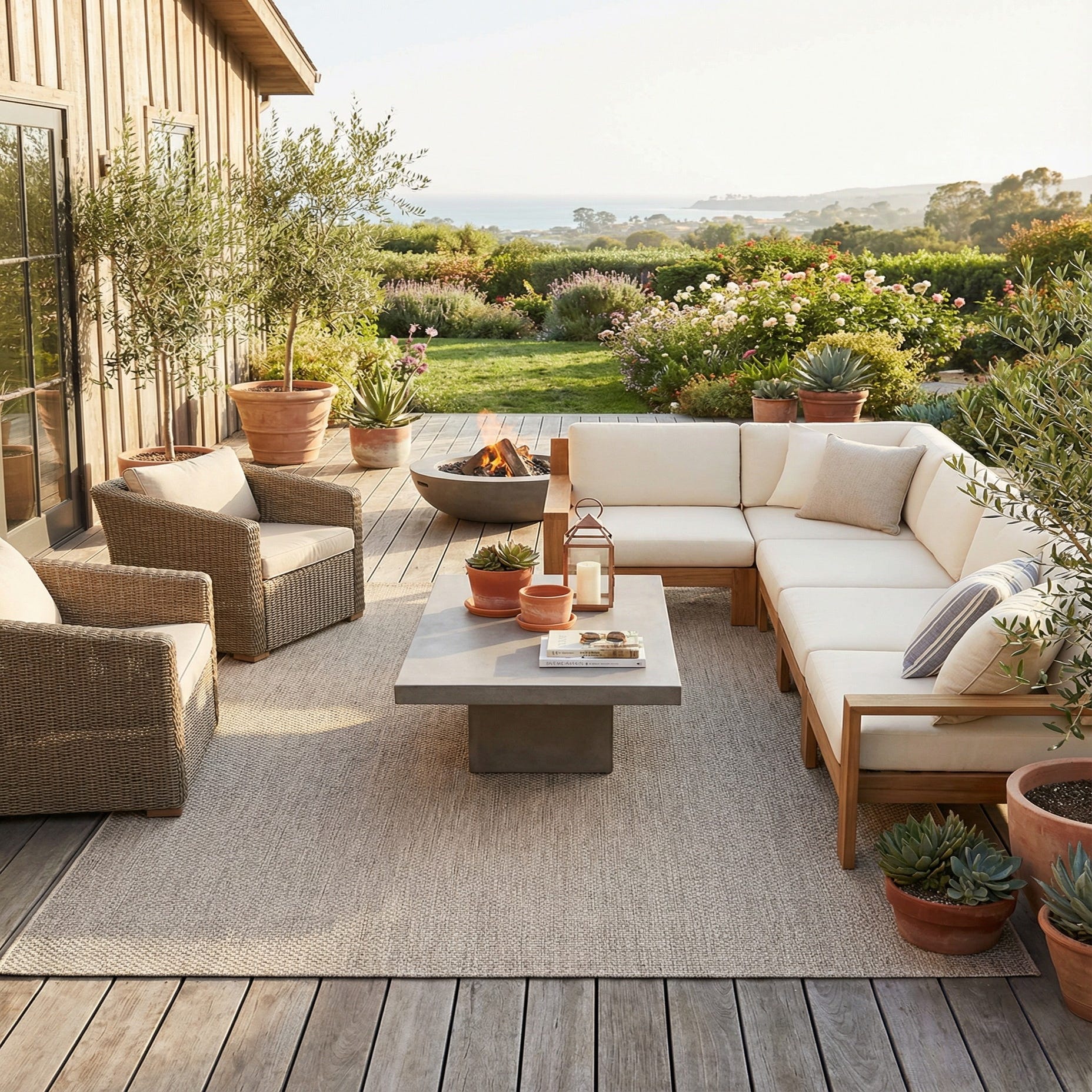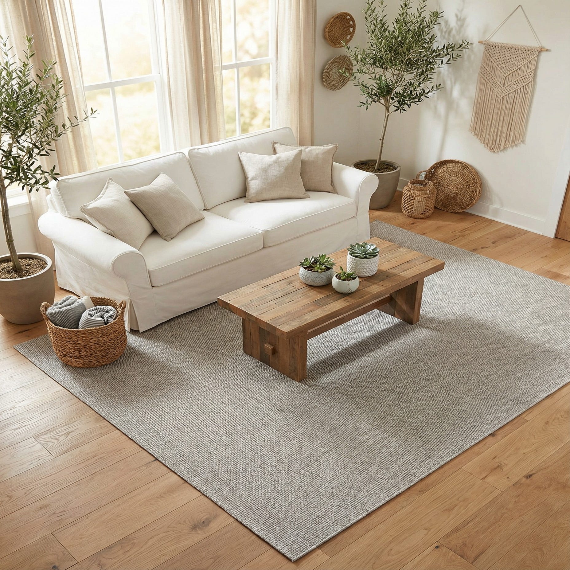 Made from 100% polypropylene, this flatwoven piece lays flat and wears in a straightforward, no-fuss way, making it well-suited to both indoor and outdoor settings. Use it to anchor a patio seating area or place it beneath a dining table for a grounded, casual feel; it also works nicely in a sunroom, coastal living room, or a modern farmhouse bedroom where neutral layering is key. Its understated palette and texture provide a quiet backdrop that complements linen, rattan, light wood, and metal accents.