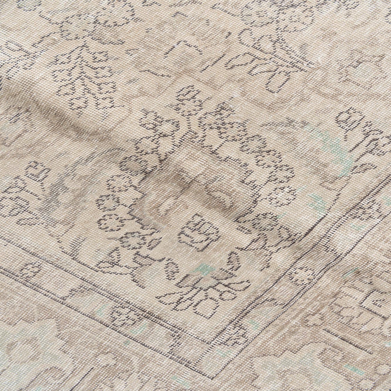 Primary color is Beige. Colors in this rug include: Beige, Black, Brown, Ivory, Green.