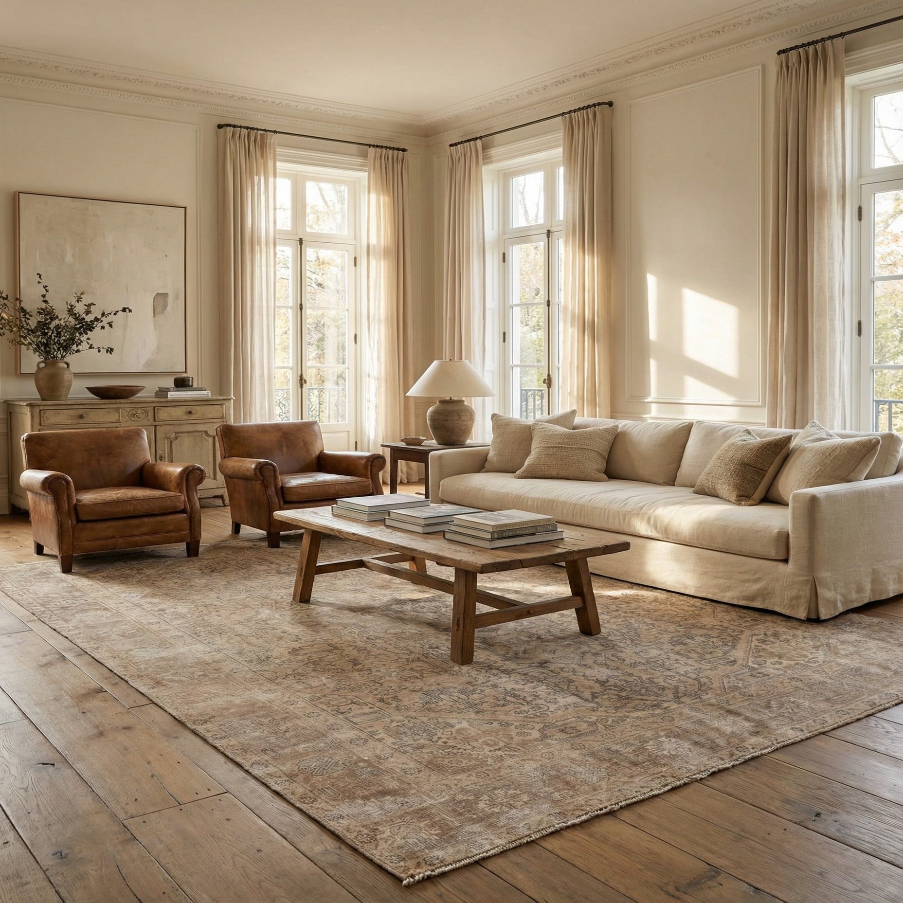 Primary color is Beige. Colors in this rug include: Beige, Brown, Ivory.