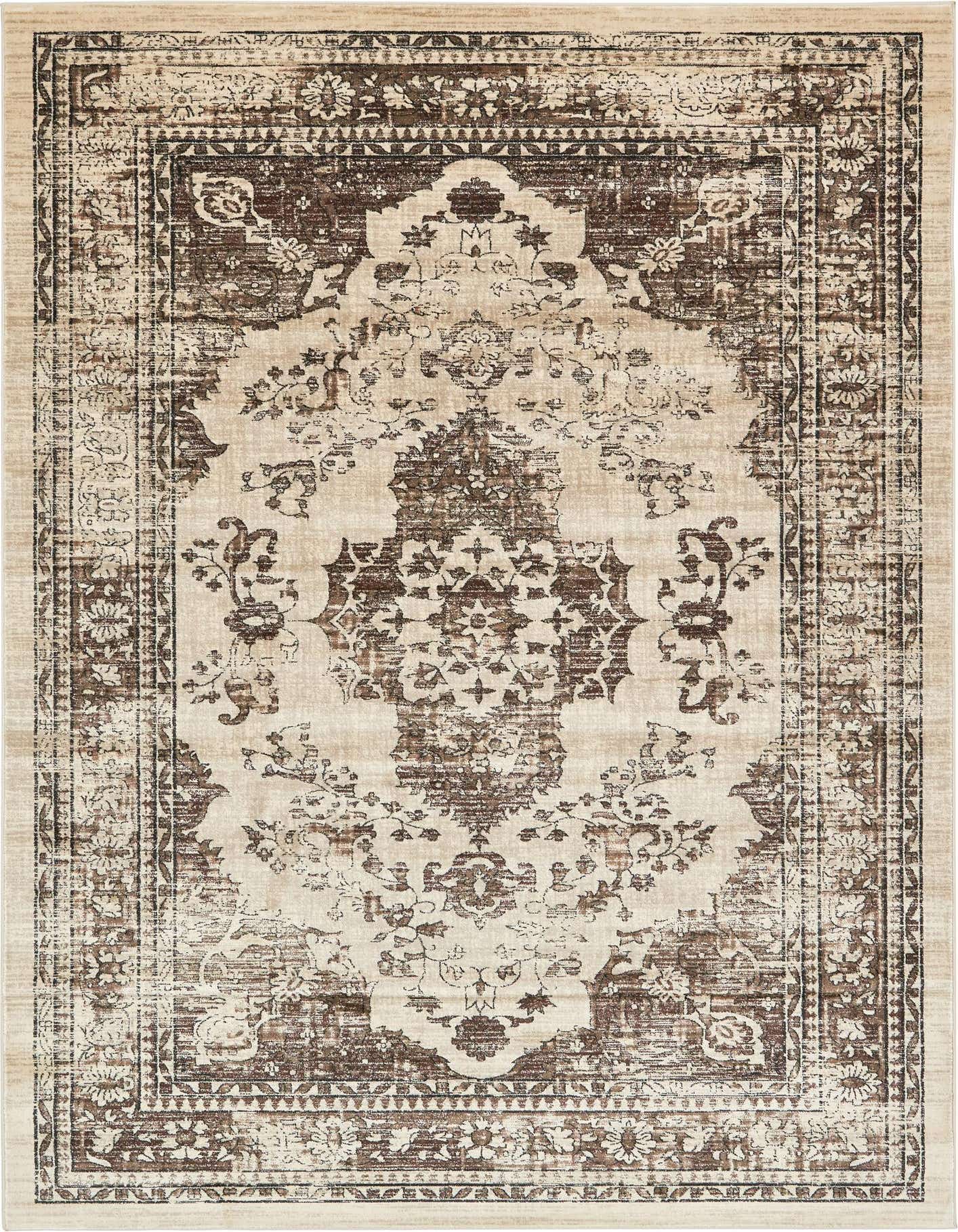 Primary color is Beige. Colors in this rug include: Beige, Black, Brown, Light Brown.