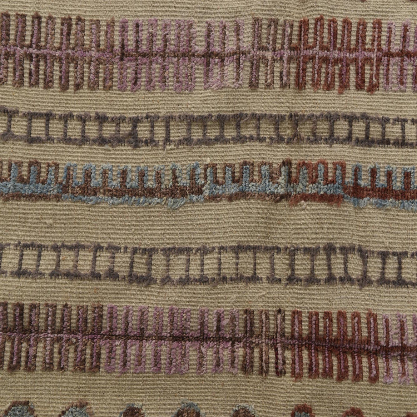 Primary color is Beige. Colors in this rug include: Beige, Brown, Violet, Gray, Light Blue.