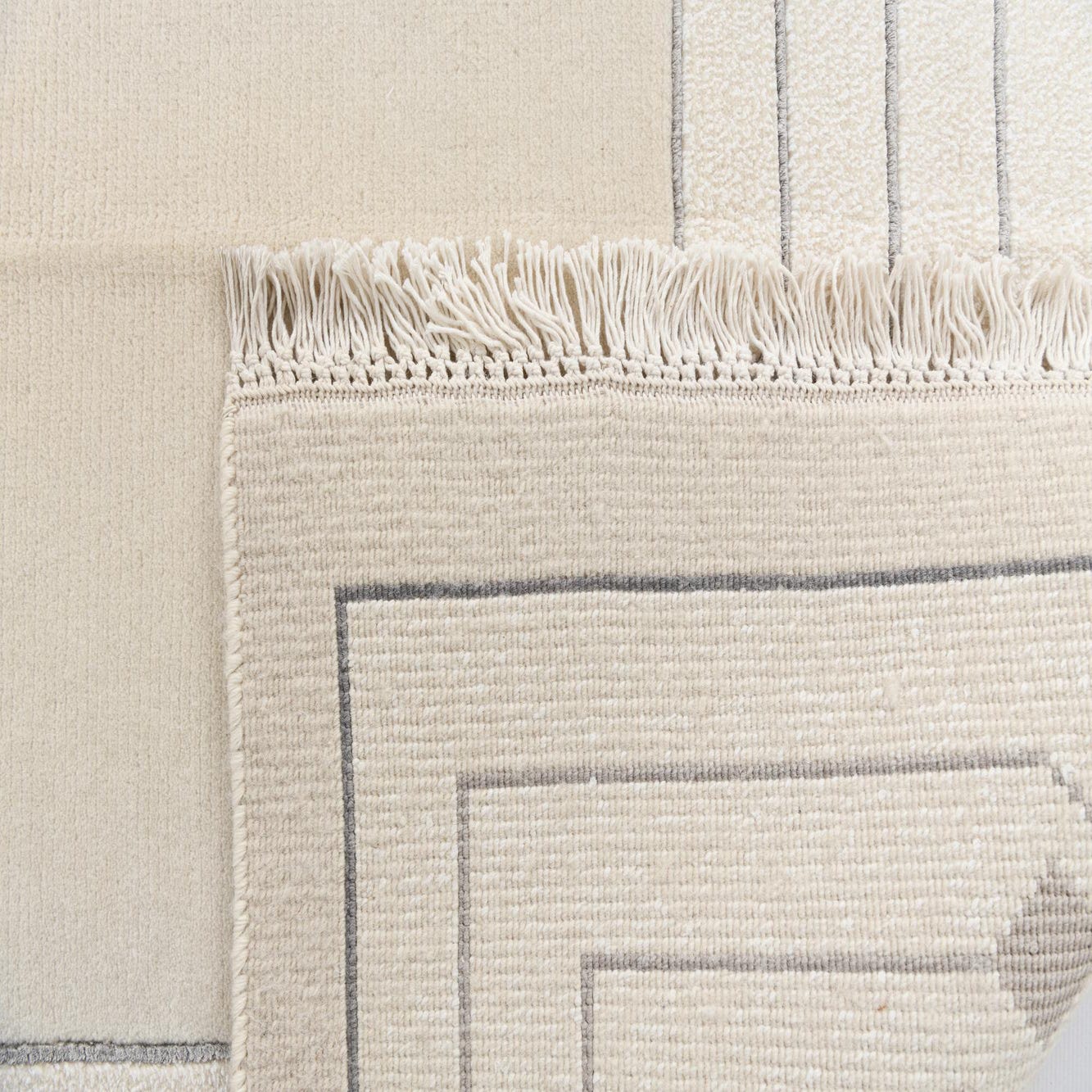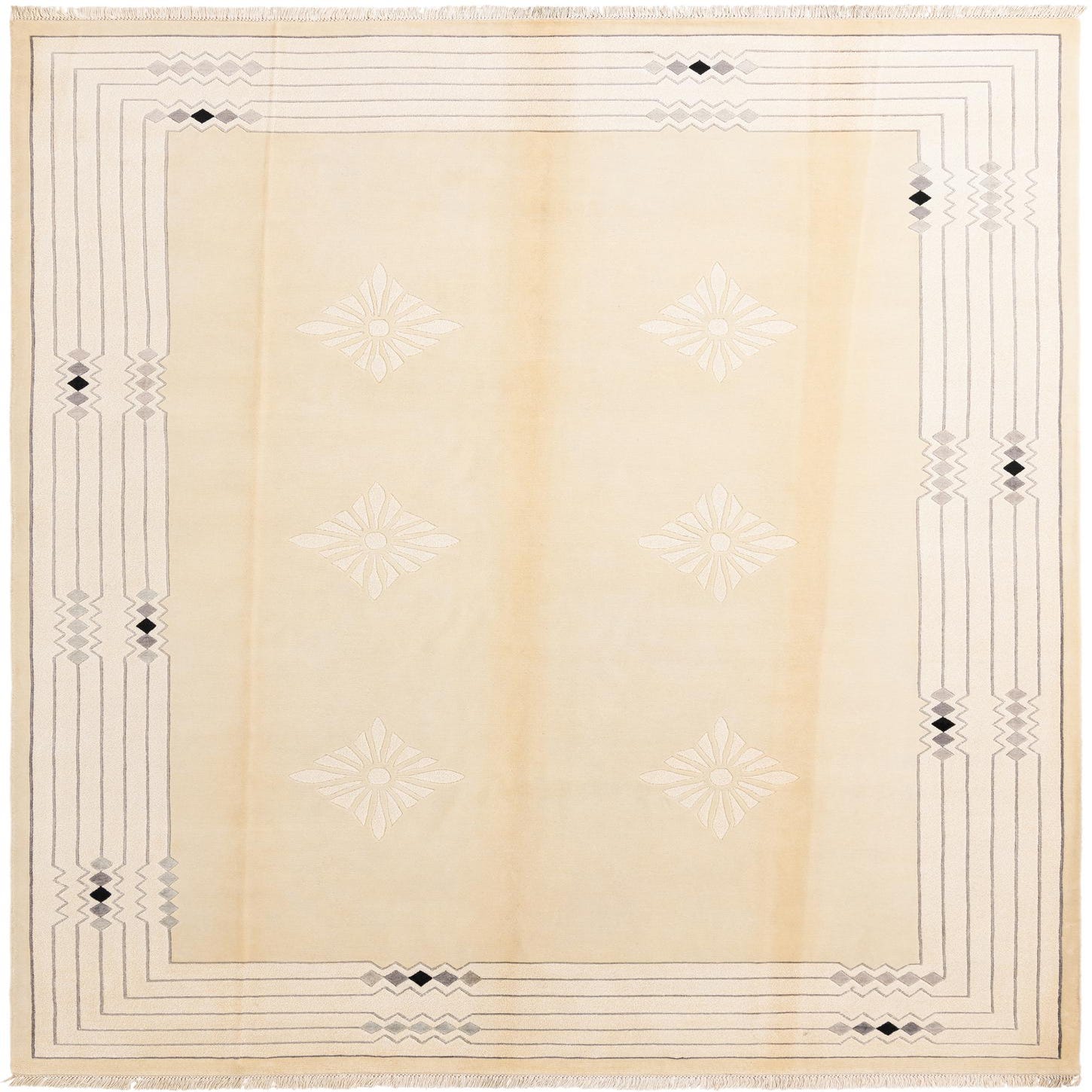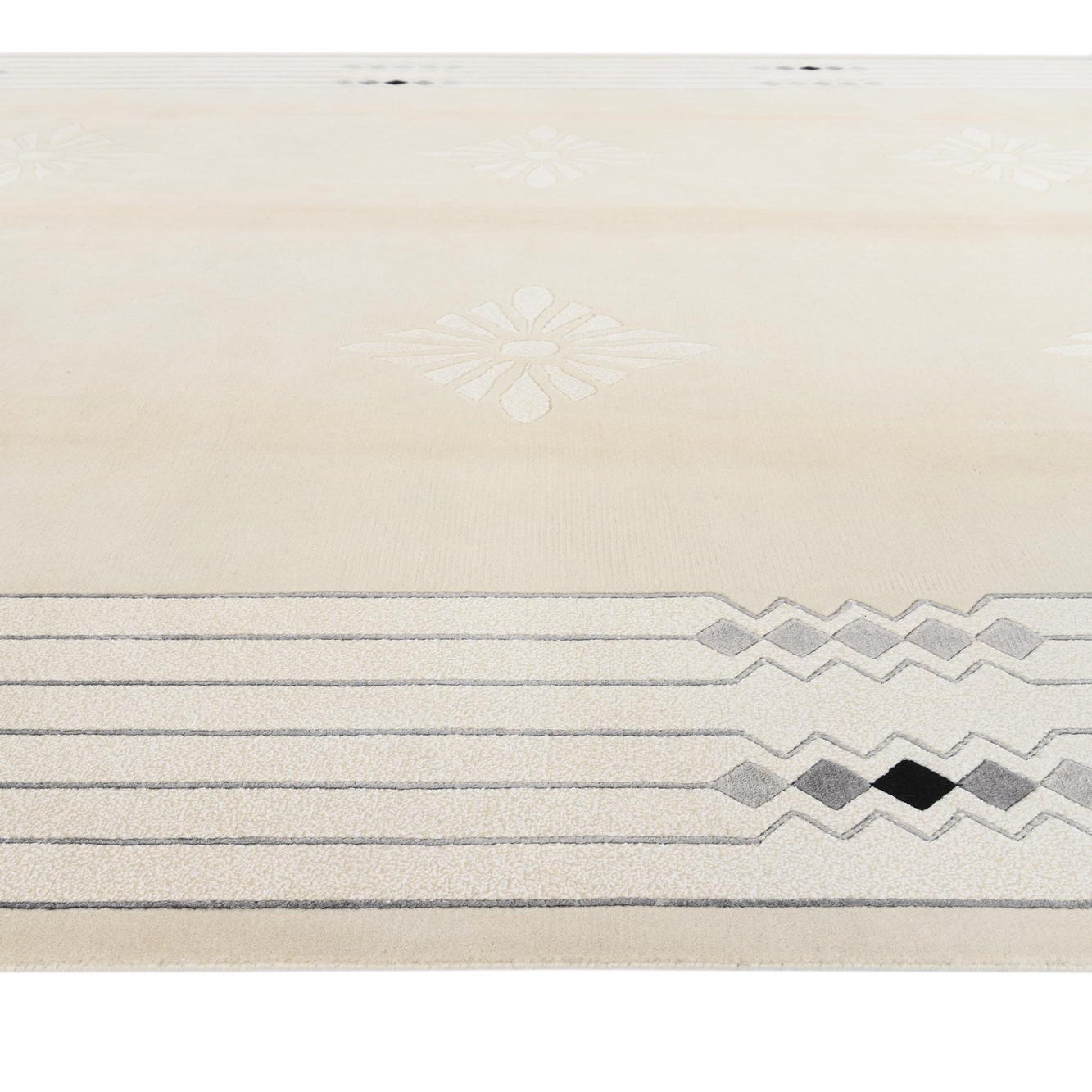 Primary color is Beige. Colors in this rug include: Beige, Cream, Gray, Silver, Black.