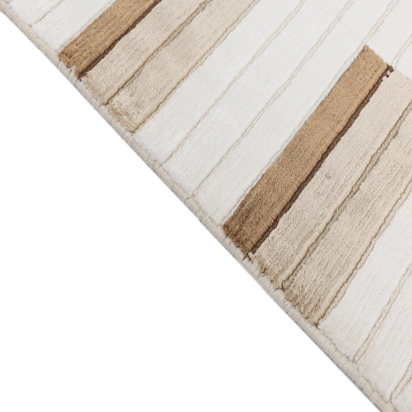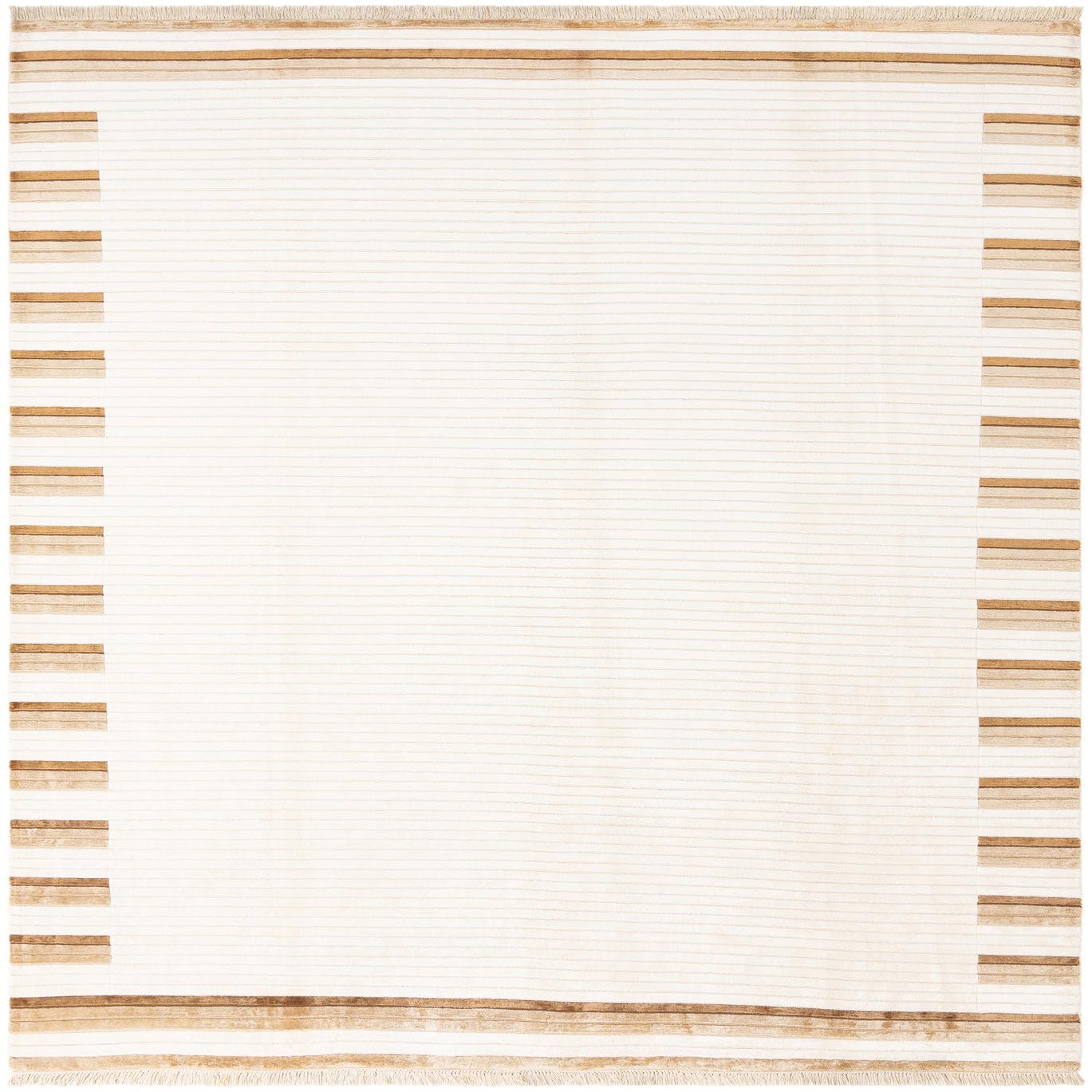 An 8x11 rectangular Darya rug in ivory and brown, featuring thin horizontal stripes and a modern Oriental border.