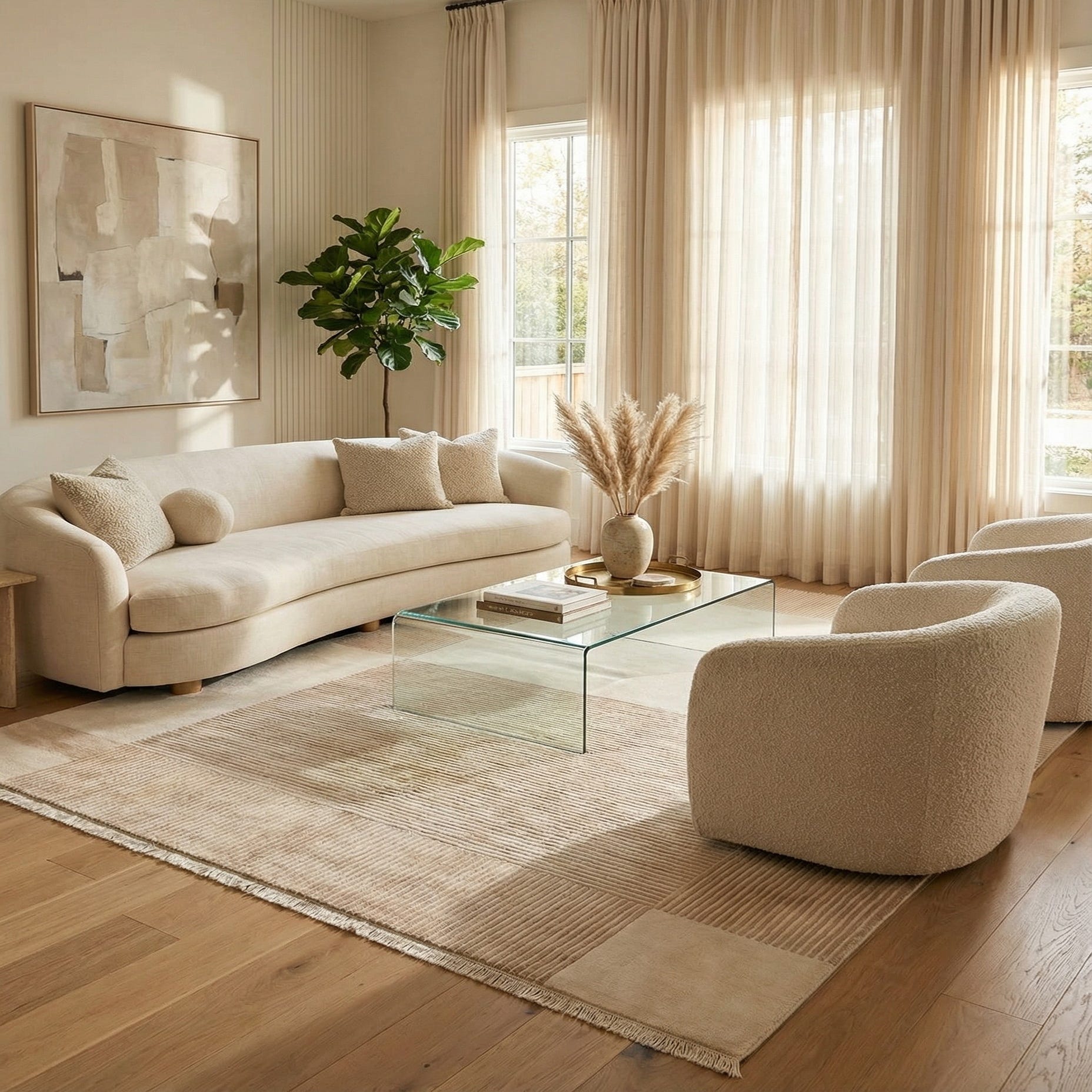 The natural wool fibers provide a soft yet resilient surface, catering to a comfortable underfoot experience. The simplicity of its design and the calming color palette make it versatile, enabling it to enhance a variety of interior design themes. It would particularly suit spaces that favor a modern, contemporary aesthetic but can easily adapt to complement minimalist or Scandinavian-inspired decors. Its understated elegance makes it a suitable match for a serene living space, grounding a sleek office, or providing balance in a softly-designed bedroom.