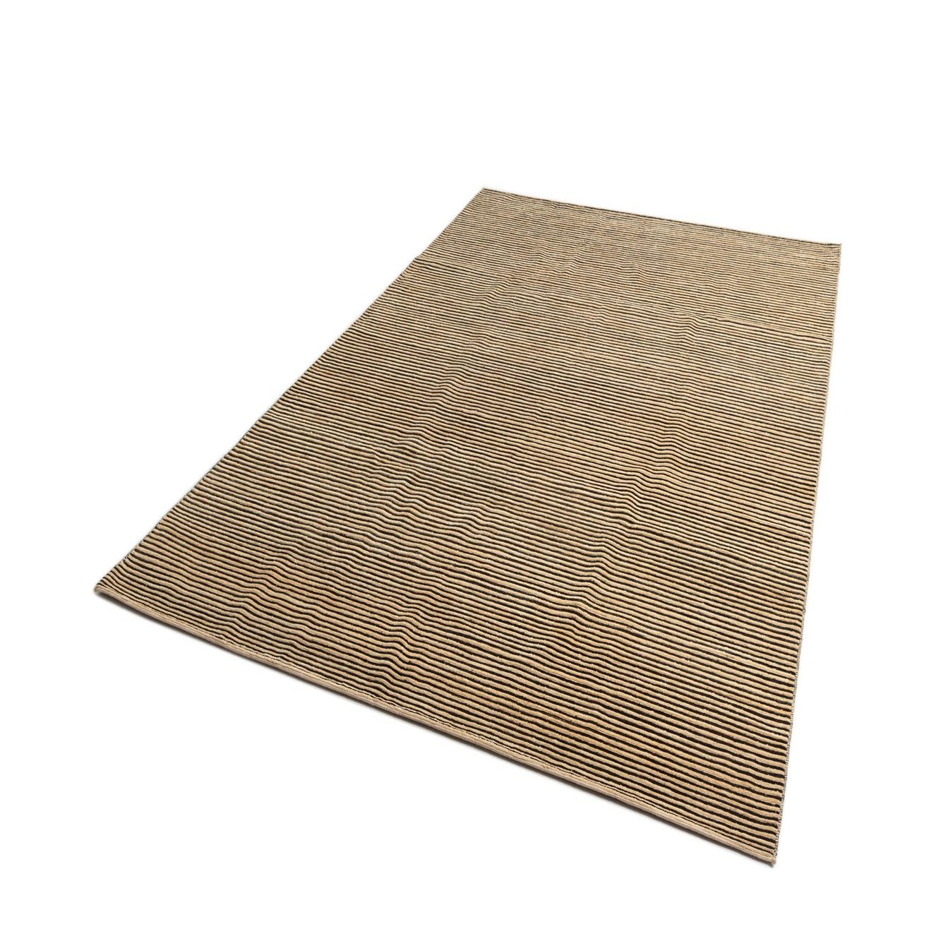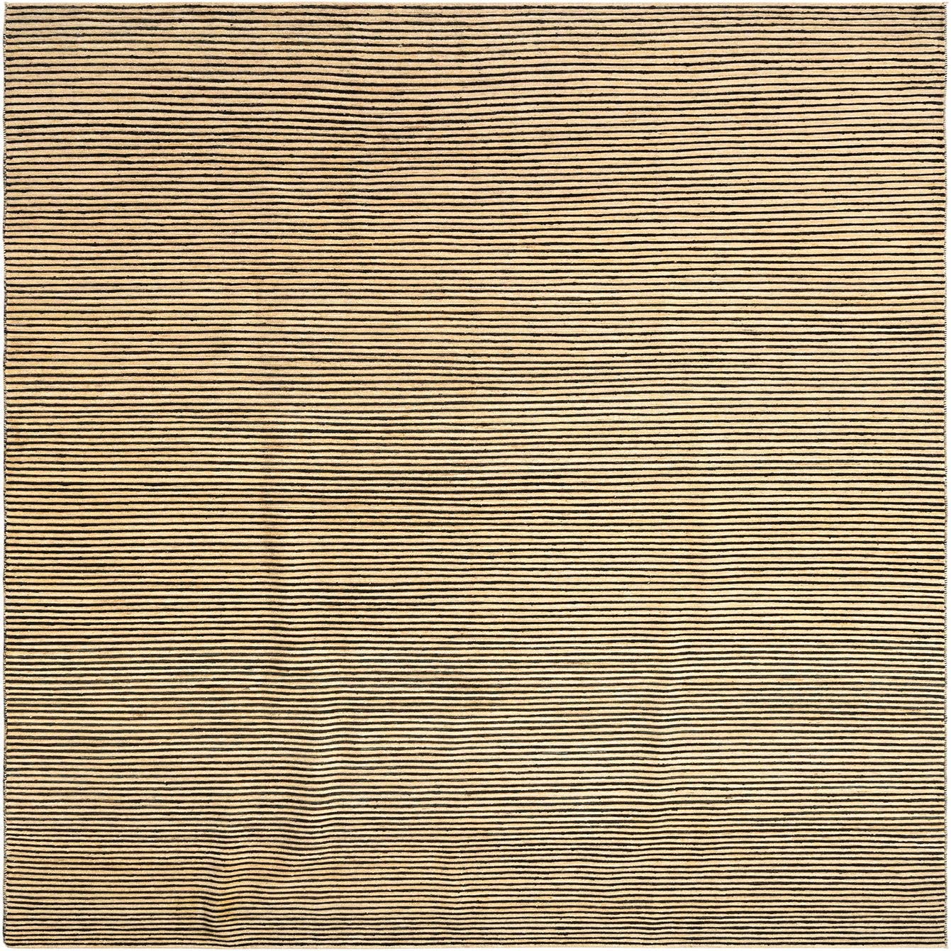 A rectangular 8x11 Juma Persian rug featuring thin, horizontal brown stripes on an ivory background.