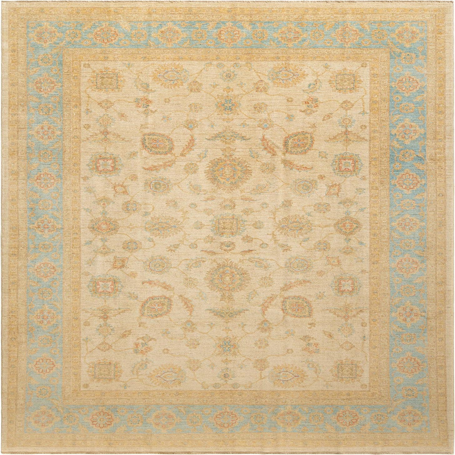 Primary color is Beige. Colors in this rug include: Beige, Beige, Turquoise, Cream.