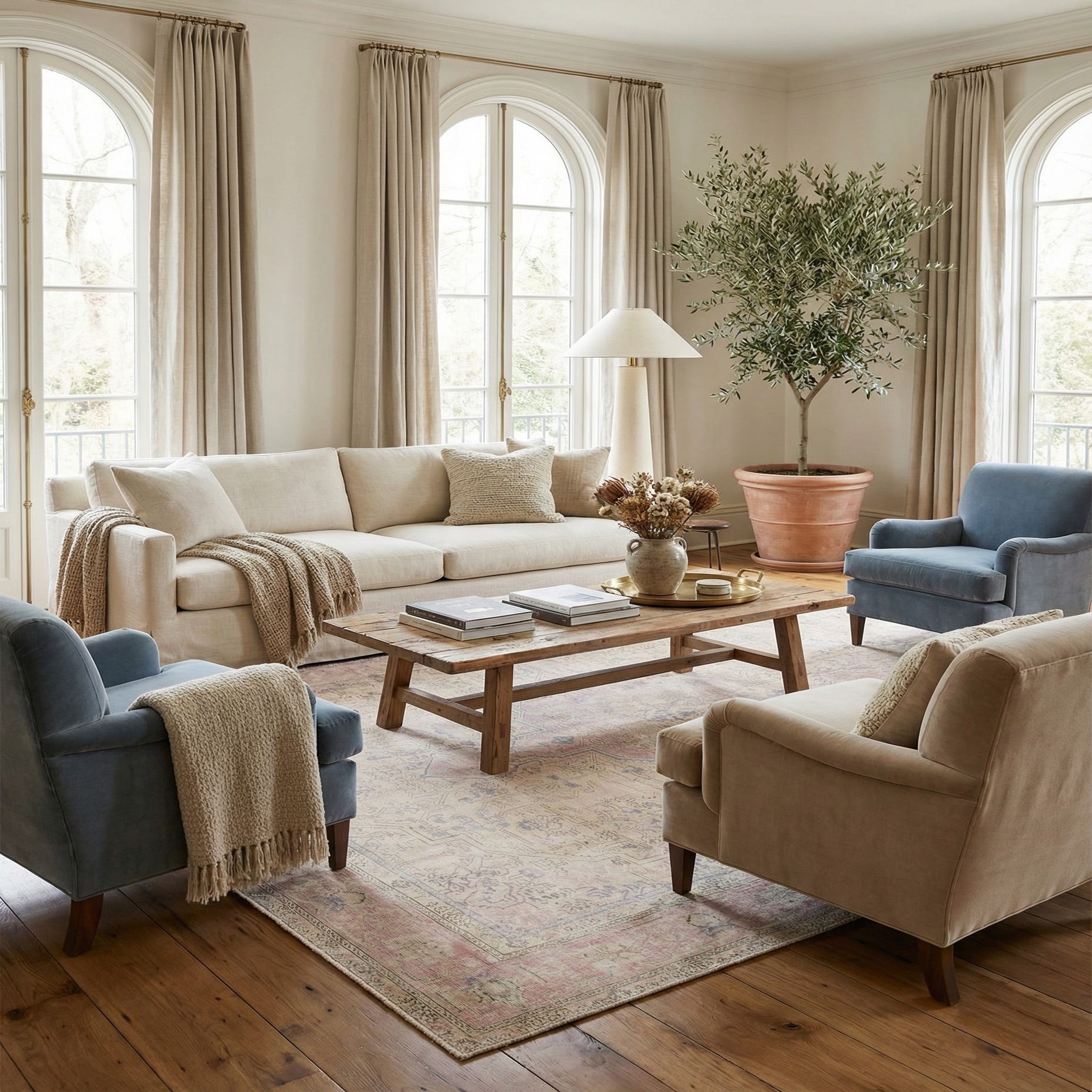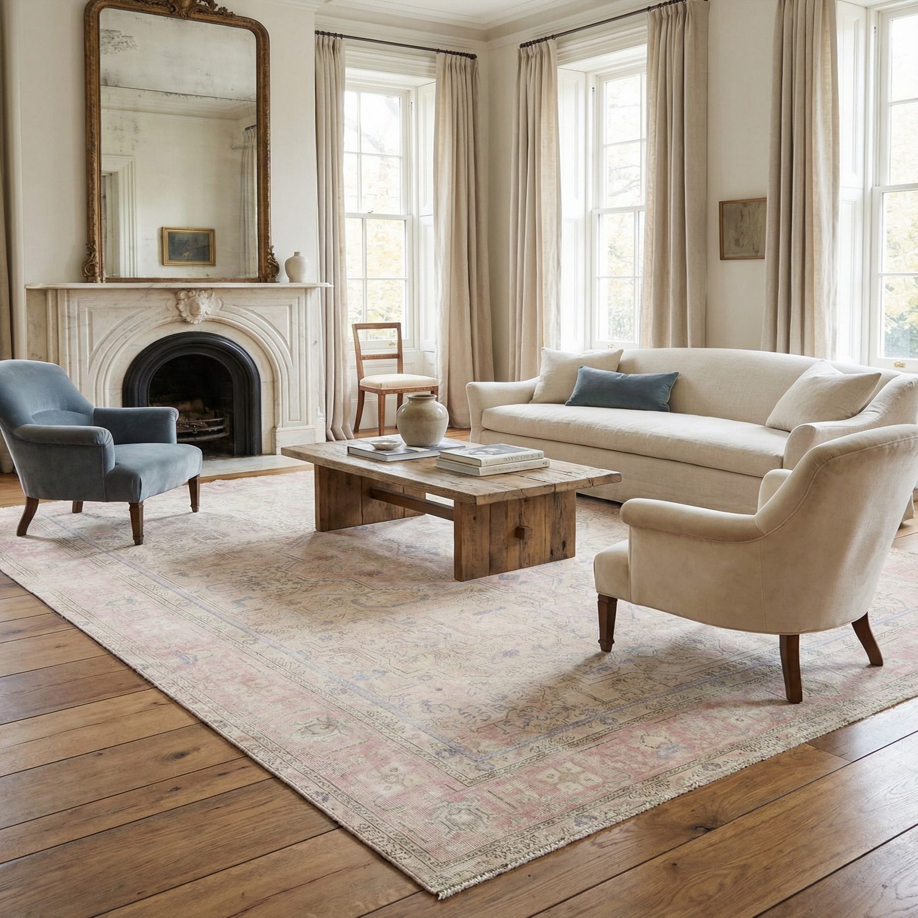 This piece complements a variety of decors, especially those that lean towards the classic and transitional. It would sit well in living rooms that feature wood finishes, leather furnishings, or in dining rooms under a grand table. The subtle hues allow for flexibility in color themes, providing a harmonious foundation that supports various palettes without dominating the room.