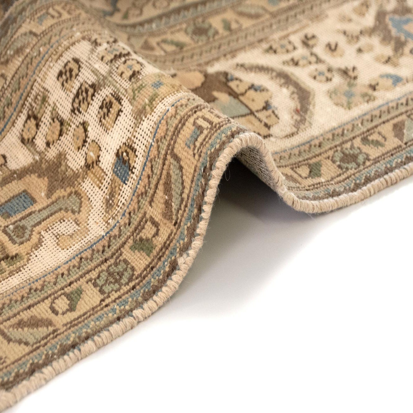 Primary color is Beige. Colors in this rug include: Beige, Brown, Green, Cream.