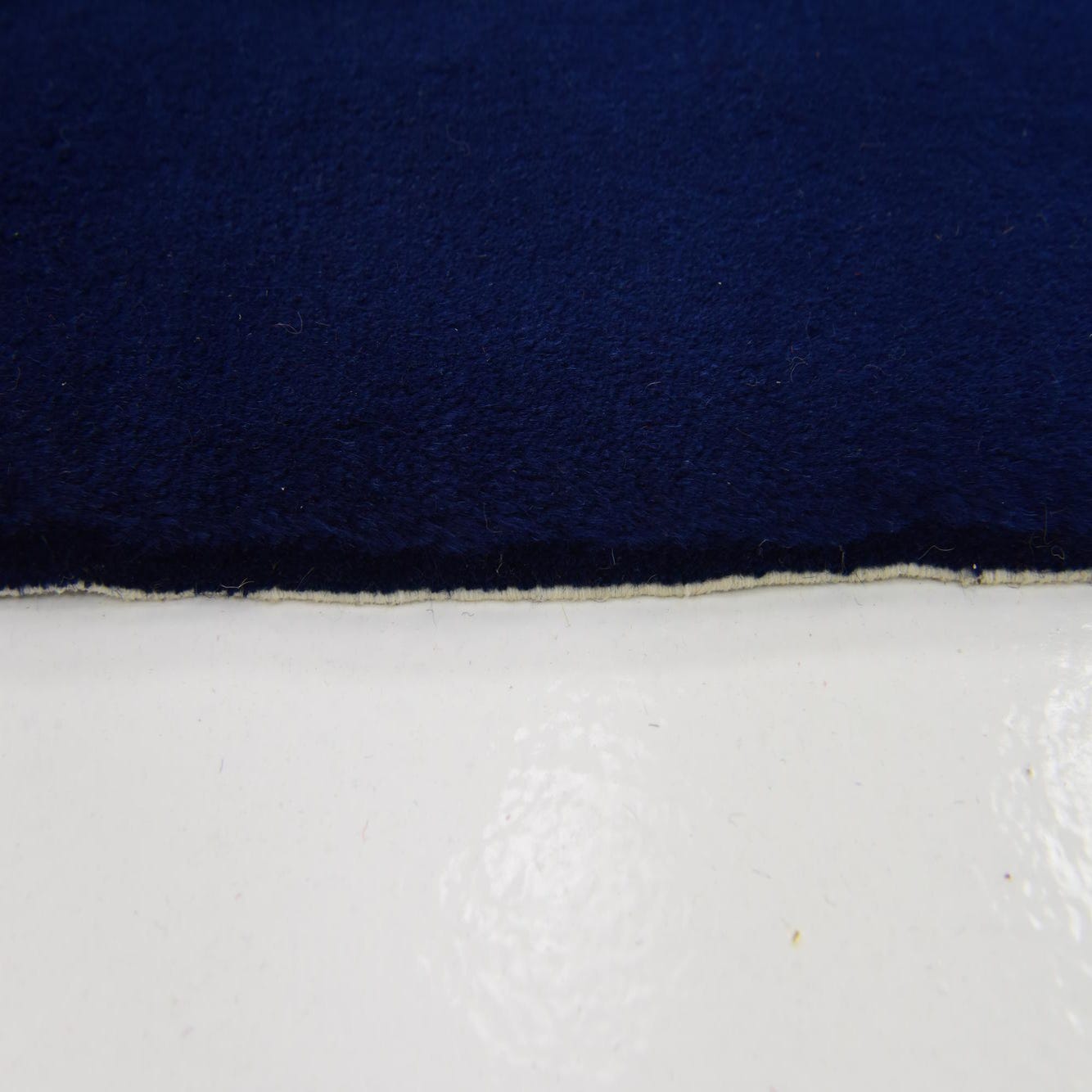 Primary color is Beige. Colors in this rug include: Beige, Navy Blue.