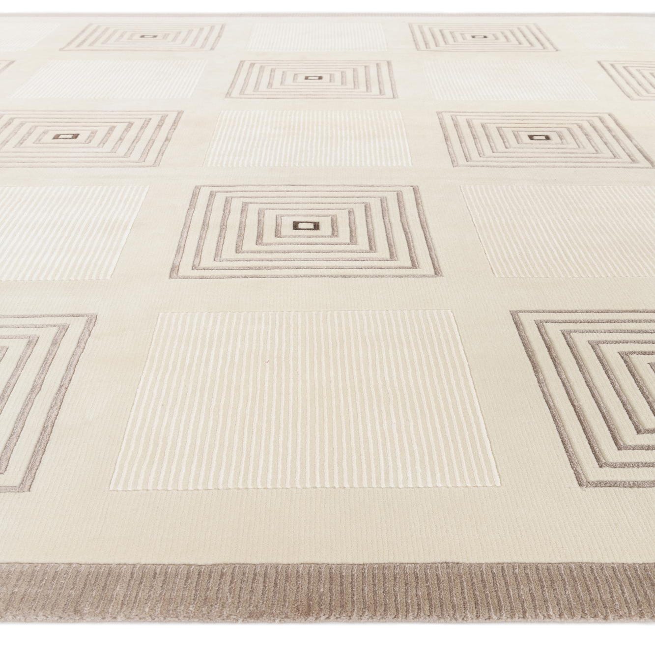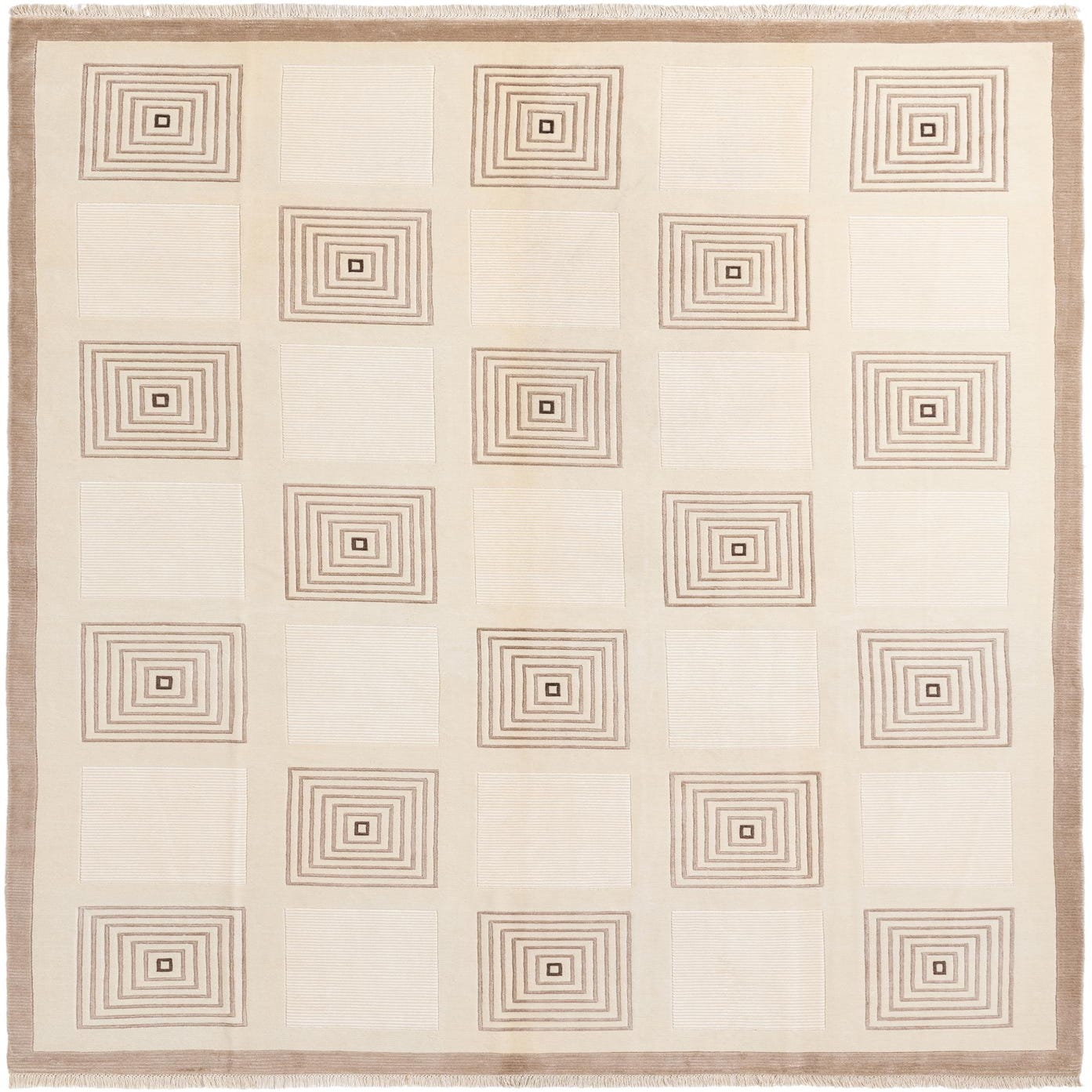 An 8x12 rectangular Darya rug with a modern geometric pattern of concentric squares in brown and cream.