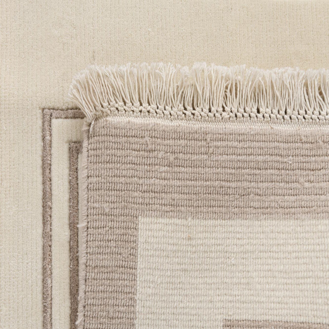 The subdued earth tones and distinct geometric pattern make this piece a versatile addition to a variety of interior design scenarios. It would complement modern and contemporary decors, aligning seamlessly with minimalist aesthetics. Similarly, it could serve as a neutral base in Scandinavian-inspired interiors, or add an element of understated elegance in transitional spaces. Additionally, the size and scale of the rug make it suitable for larger rooms where it could delineate seating or dining areas, enhancing the cohesion of the overall design scheme. Its durability and timeless design ensure that it will be an enduring feature in any space it inhabits.