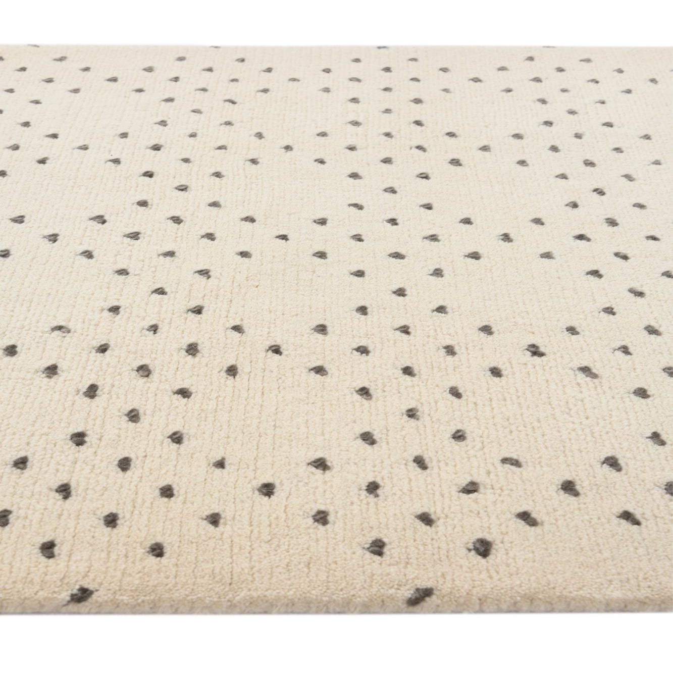 A 9 ft Darya runner rug featuring a cream background with a modern pattern of small, scattered brown dots.