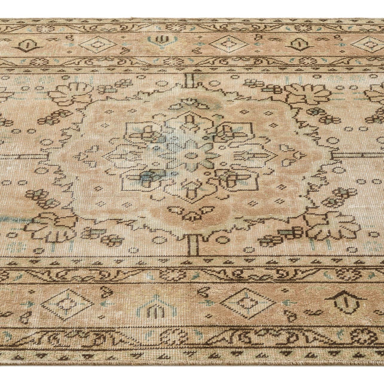 A 9 ft runner rug in shades of brown and tan, featuring a distressed Persian medallion pattern, ideal for a hallway.