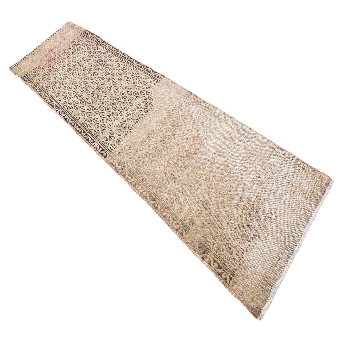 A 9 ft runner rug with a faded Persian pattern in brown, tan, and cream, ideal for a hallway.