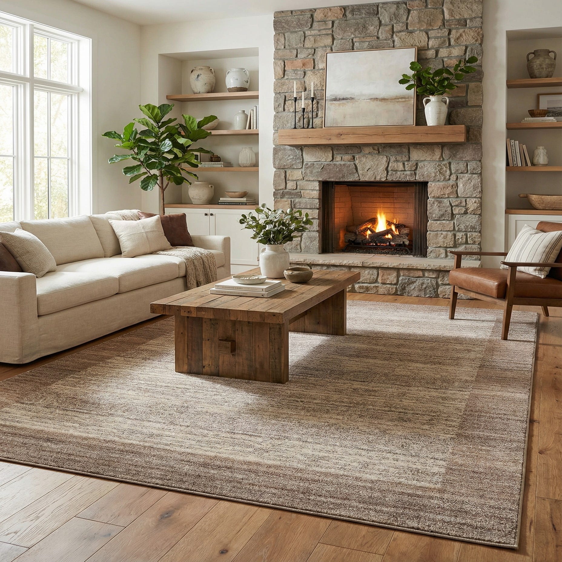 Machine made from 100% polypropylene, the rug offers consistent construction and a restrained aesthetic that pairs easily with a range of interiors. It works well as an anchor for a living room seating area, beneath a dining table, or layered in a bedroom. Style it with warm wood furniture and neutral upholstery for a cozy, cohesive feel, or use it to soften a clean-lined, Scandinavian or modern farmhouse scheme with textured linens, leather accents, and woven accessories.