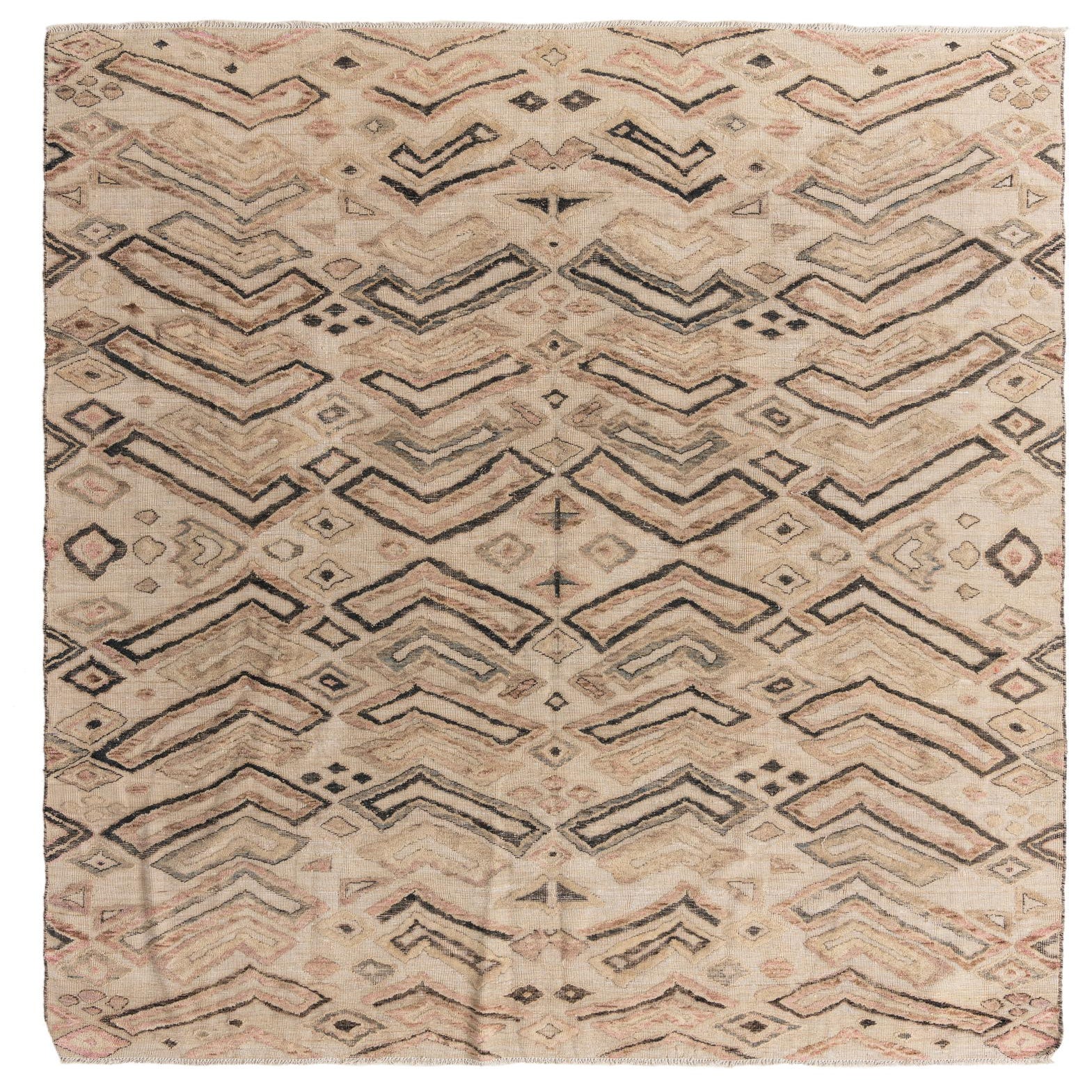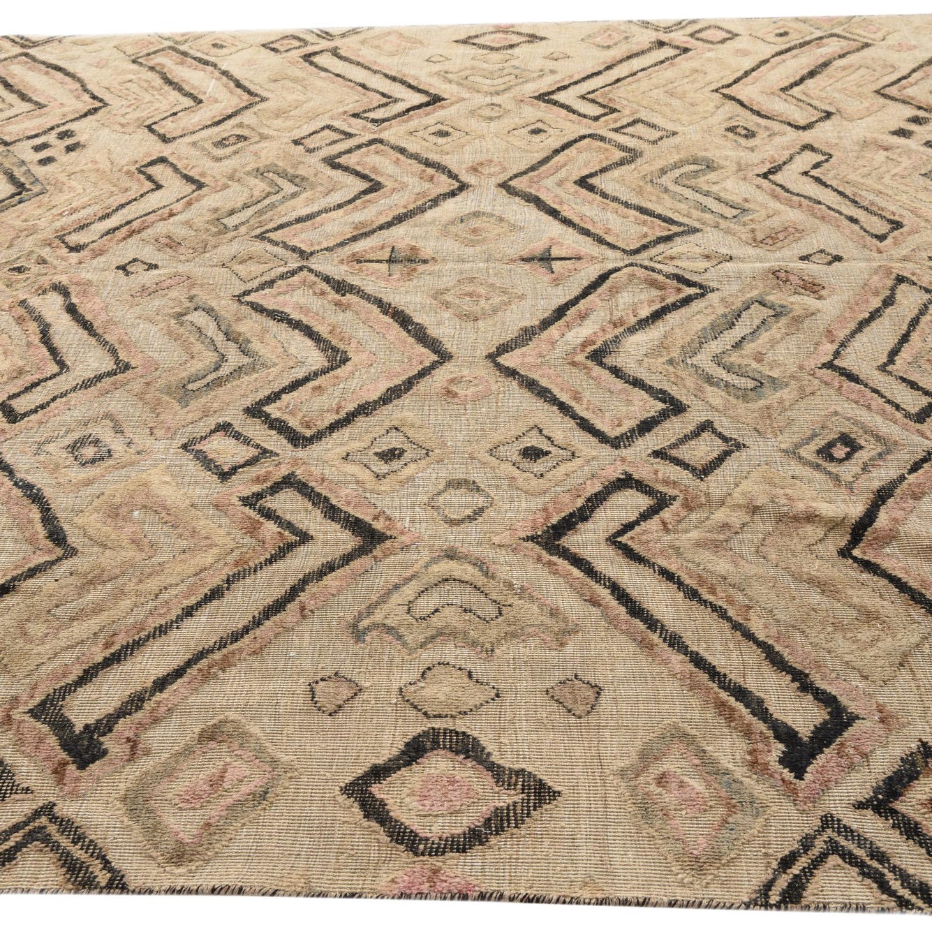 Primary color is Beige. Colors in this rug include: Beige, Black, Brown, Gray, Tan, Pink, Ivory.