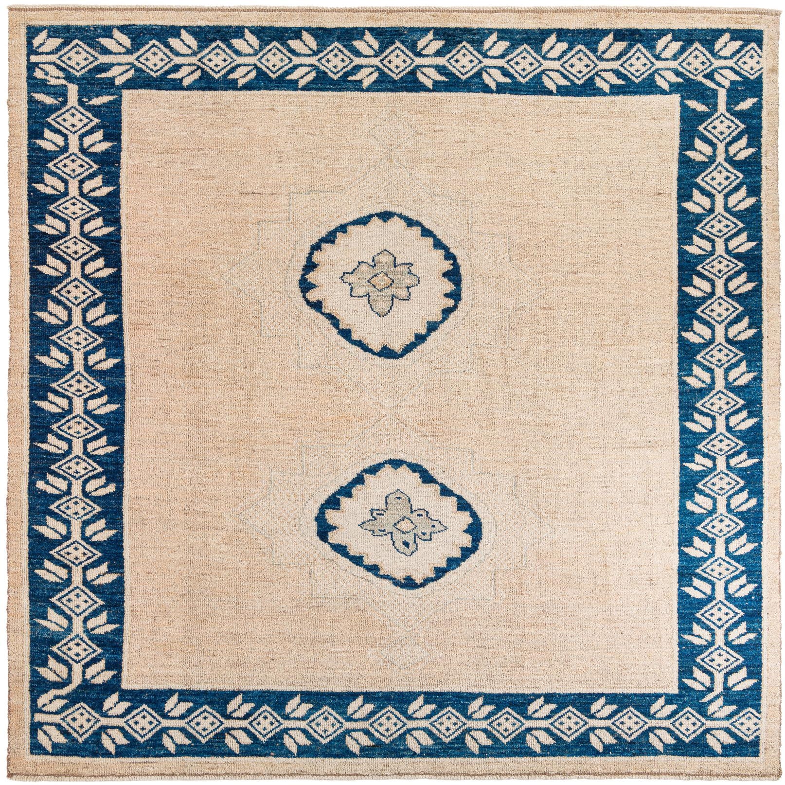 Primary color is Beige. Colors in this rug include: Beige, Blue, Ivory, Light Blue.