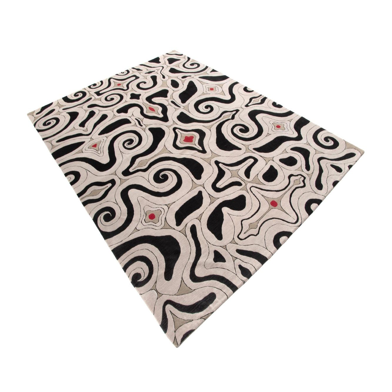 This Odegard area rug would seamlessly integrate into modern and contemporary interior settings, owing to its sophisticated pattern and the neutral yet bold color scheme. It could serve as an anchor in a minimalist living space, introduce a sense of movement in a home office or accentuate the sleek lines of modern furniture in a dining area. The versatility of this rug's design also allows for it to be paired with bolder color palettes or to add depth to a monochromatic room.