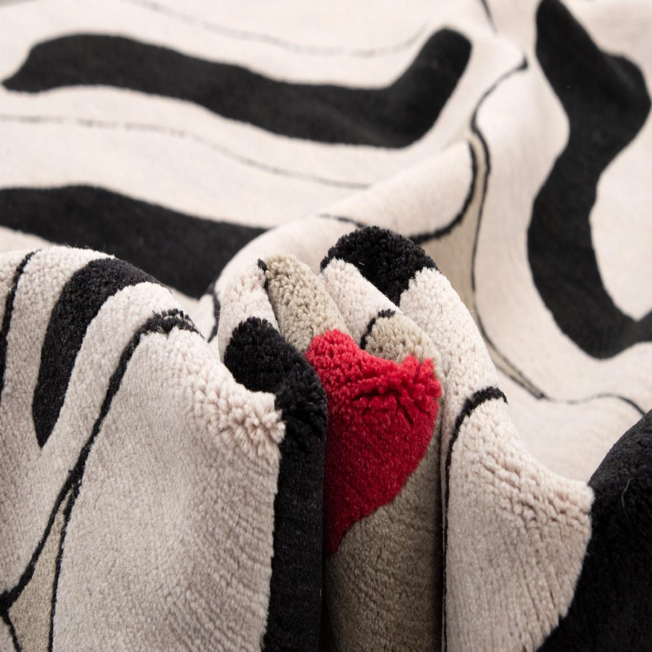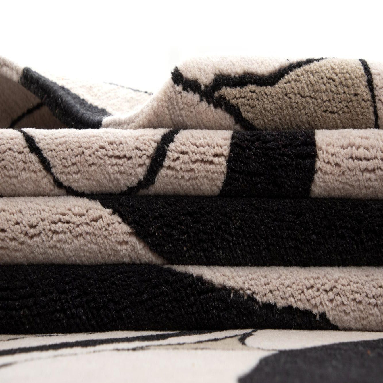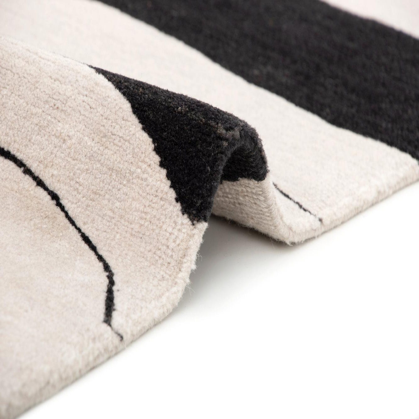 With a plush texture and crafted from high-quality wool, this rug offers both comfort and durability. The craftsmanship is evident in the rug's meticulously hand-made contours and lines, bringing a subtle, artistic quality to the piece.