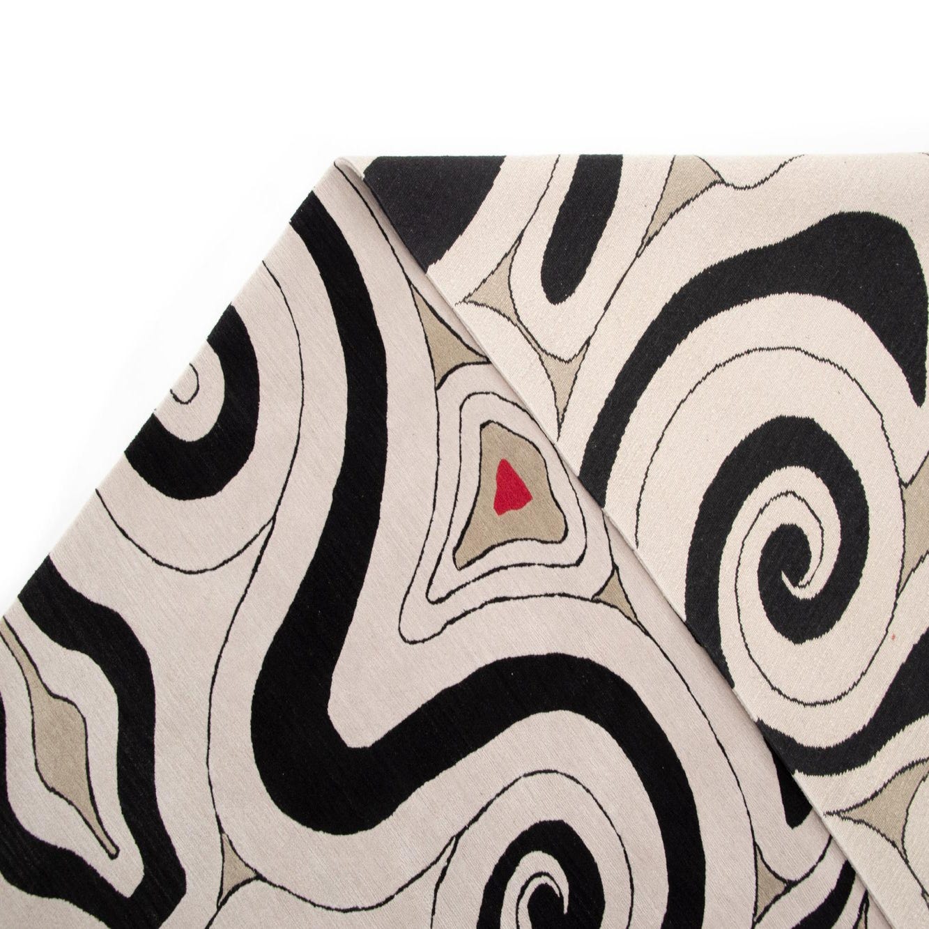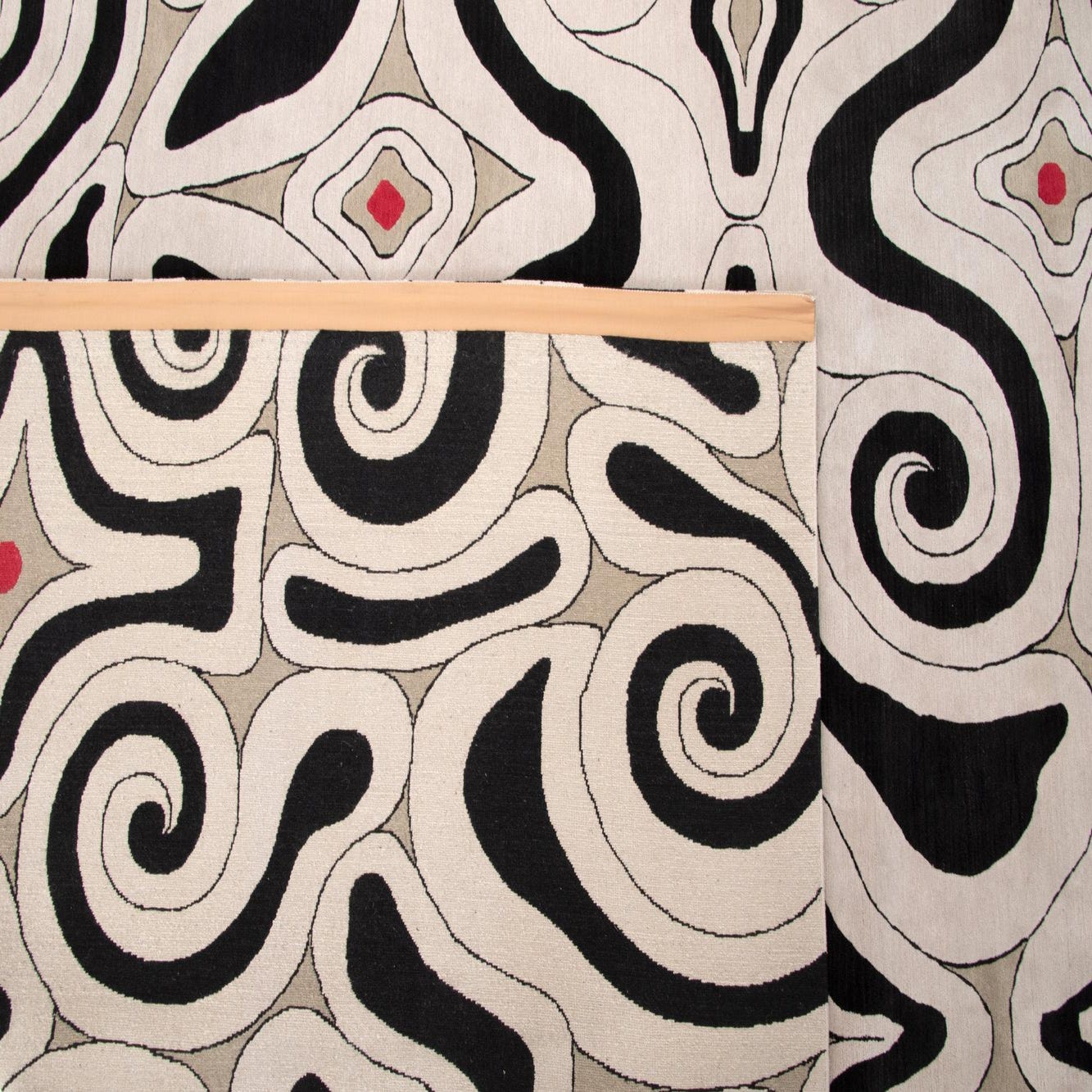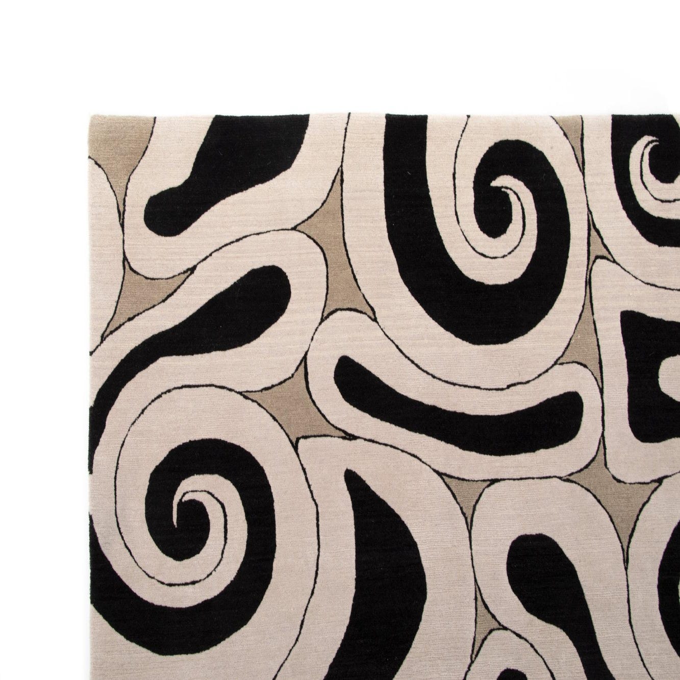 With a plush texture and crafted from high-quality wool, this rug offers both comfort and durability. The craftsmanship is evident in the rug's meticulously hand-made contours and lines, bringing a subtle, artistic quality to the piece.
