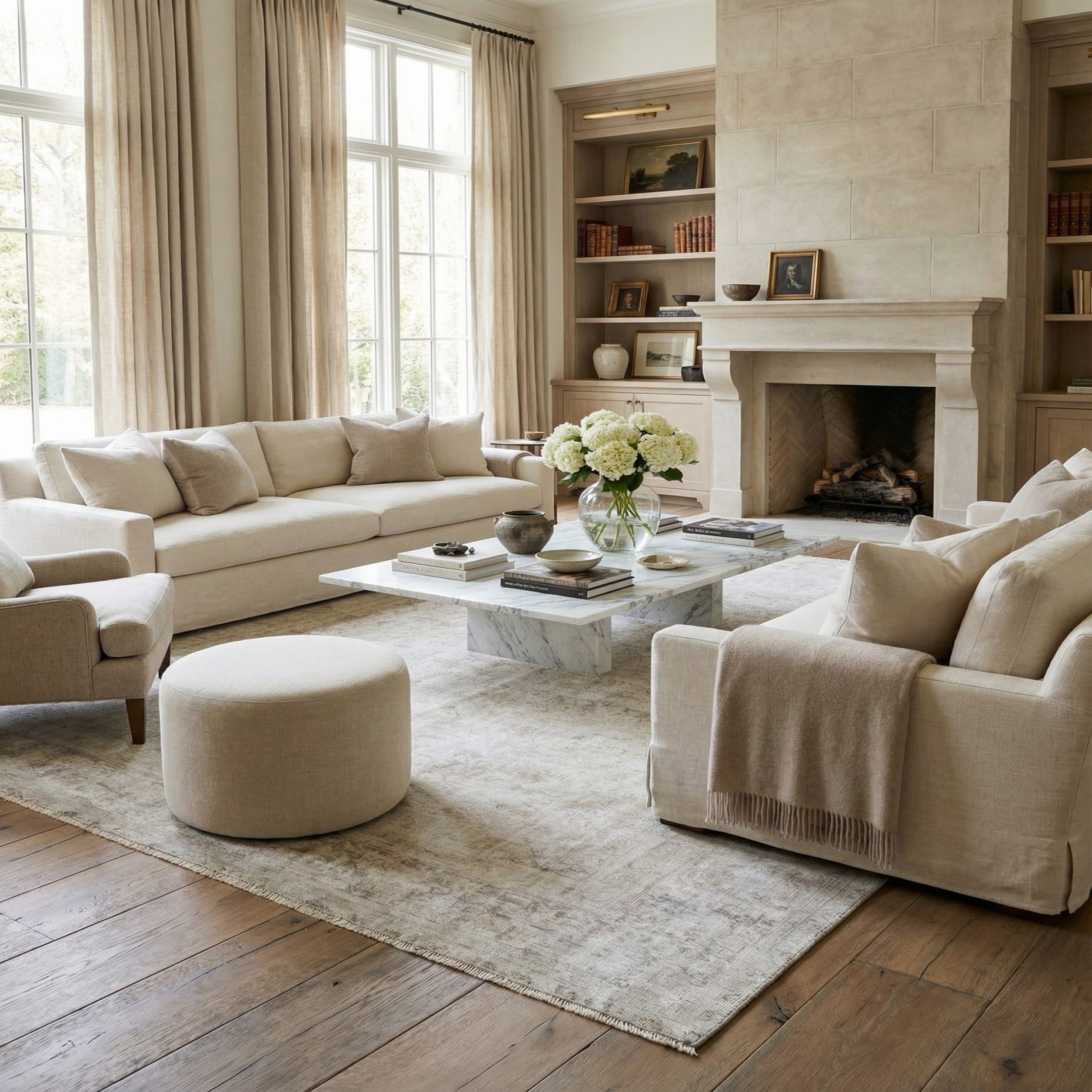 Primary color is Beige. Colors in this rug include: Beige, Black, Ivory, Brown.