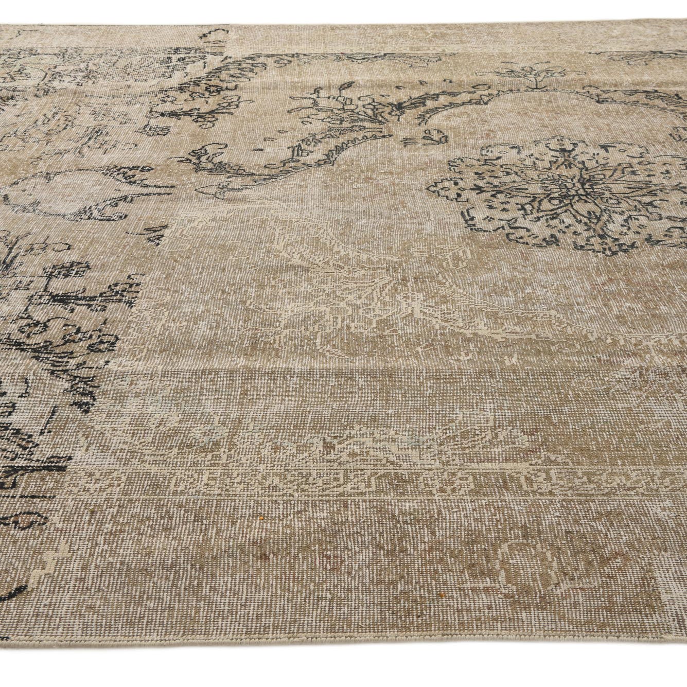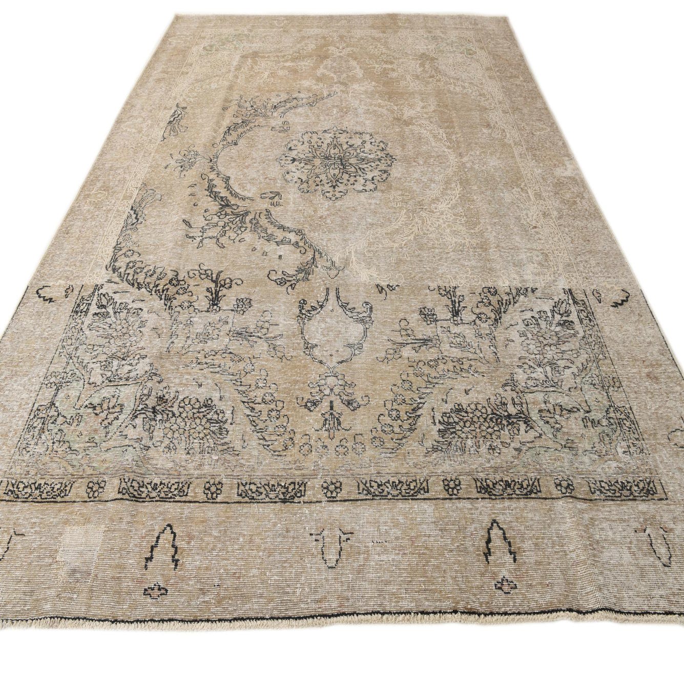 A 9x12 rectangular Ultra Vintage wool rug in browns and ivories, featuring a faded Persian floral pattern.